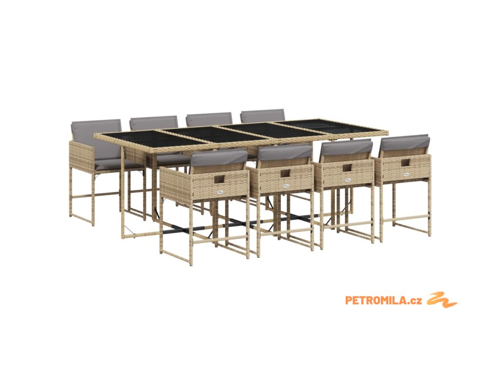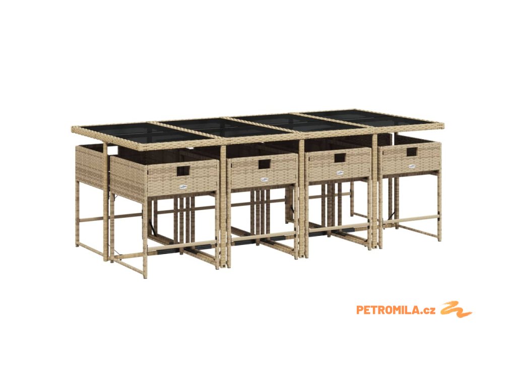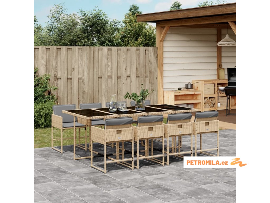 9dílný zahradní jídelní set s poduškami mix béžové polyratan