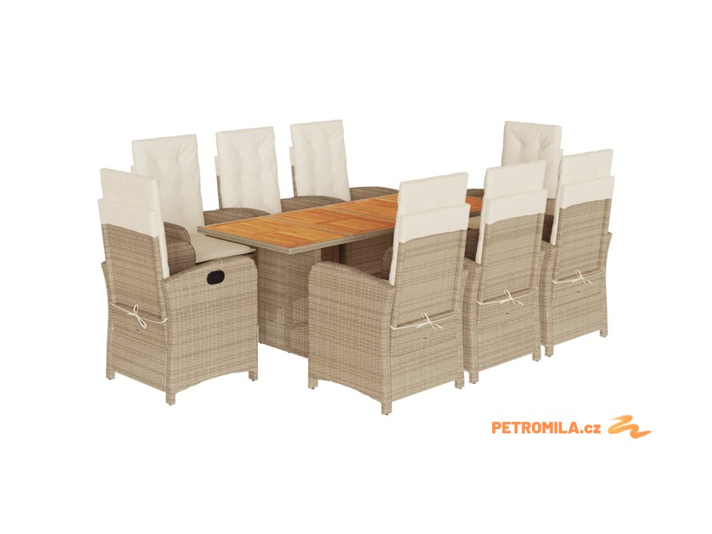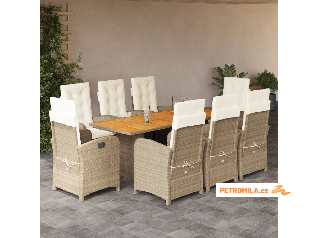 9dílný zahradní jídelní set s poduškami mix béžové polyratan