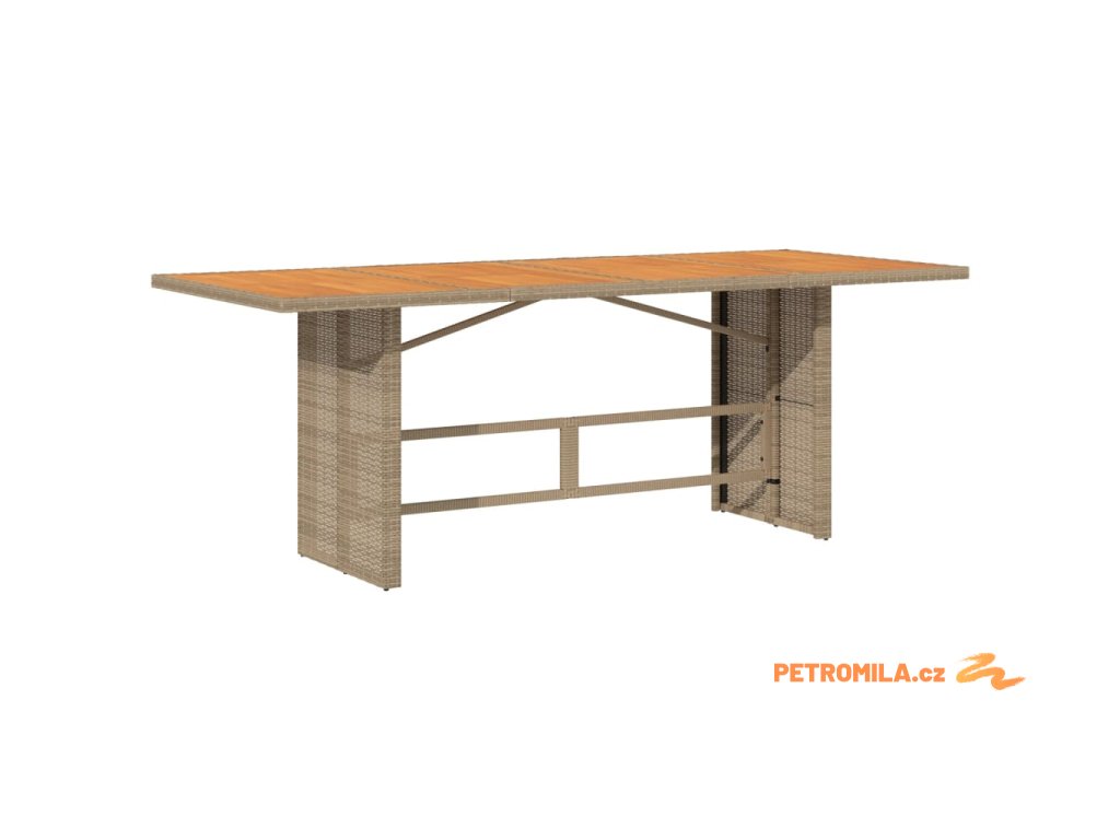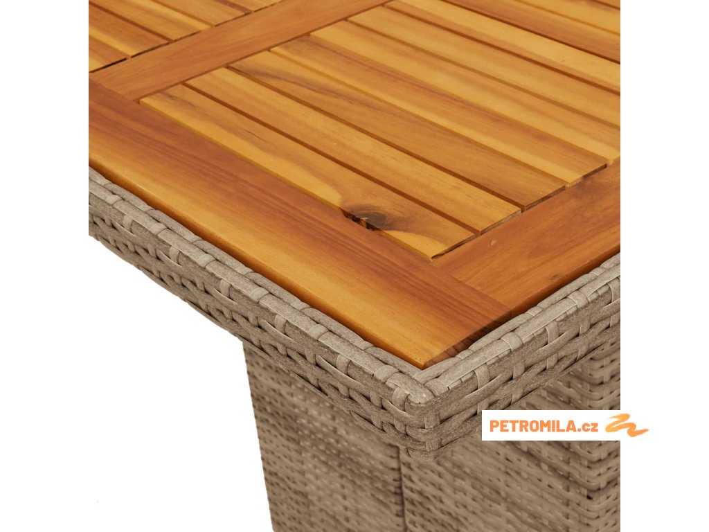 - Materiál: PE ratan, práškově lakovaná ocel, masivní akáciové dřevo s olejovou povrchovou úpravou