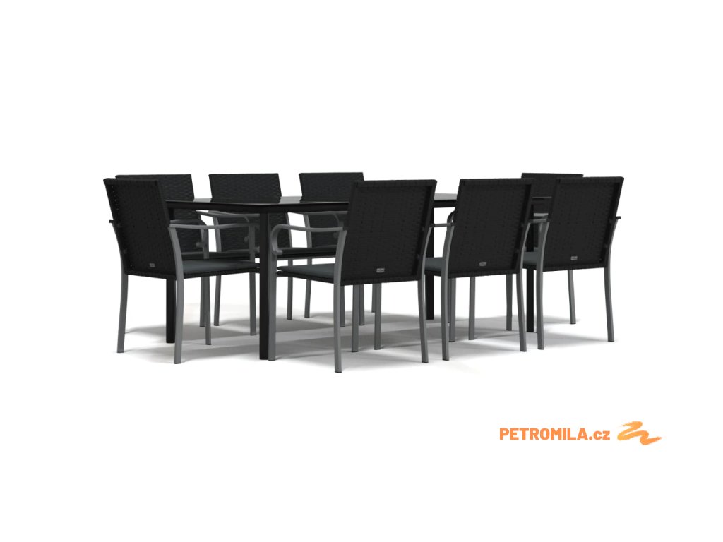 9dílný zahradní jídelní set s poduškami polyratan a ocel