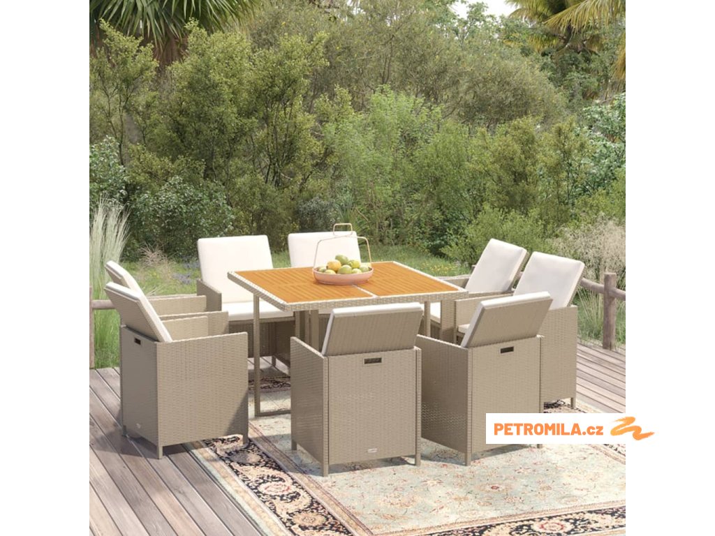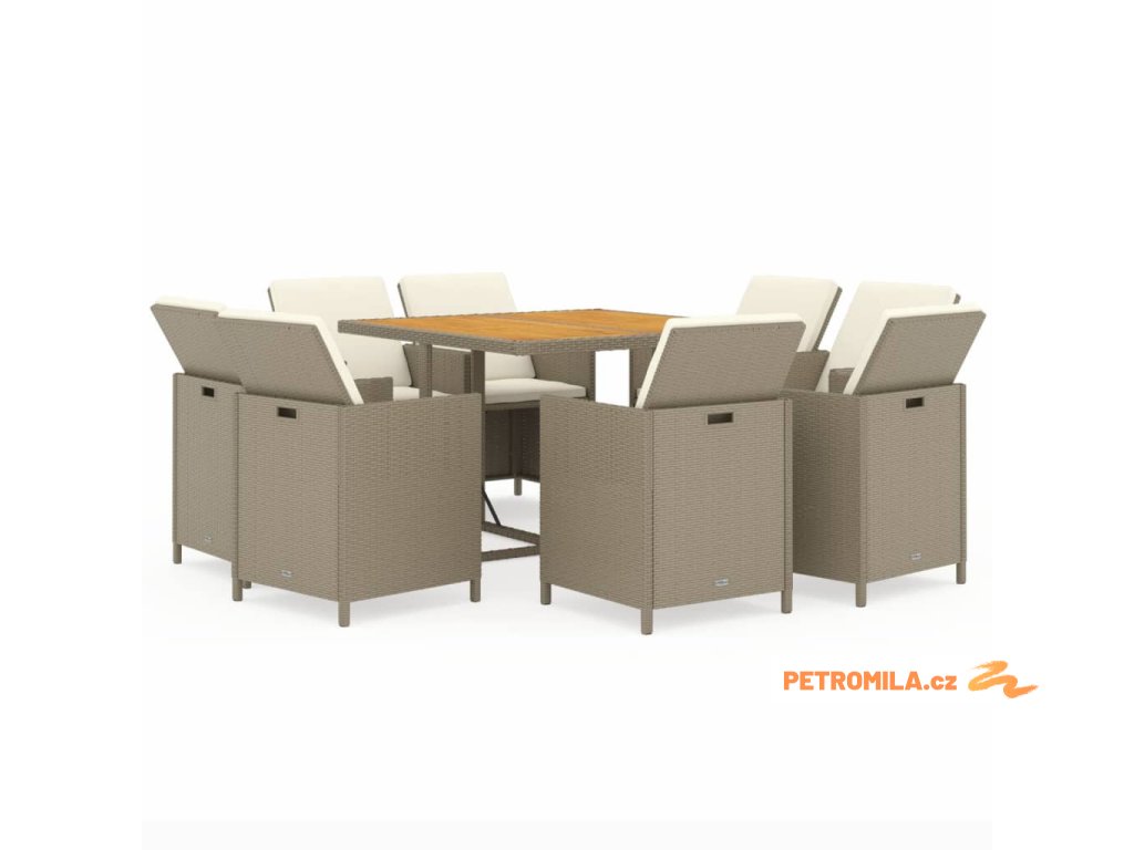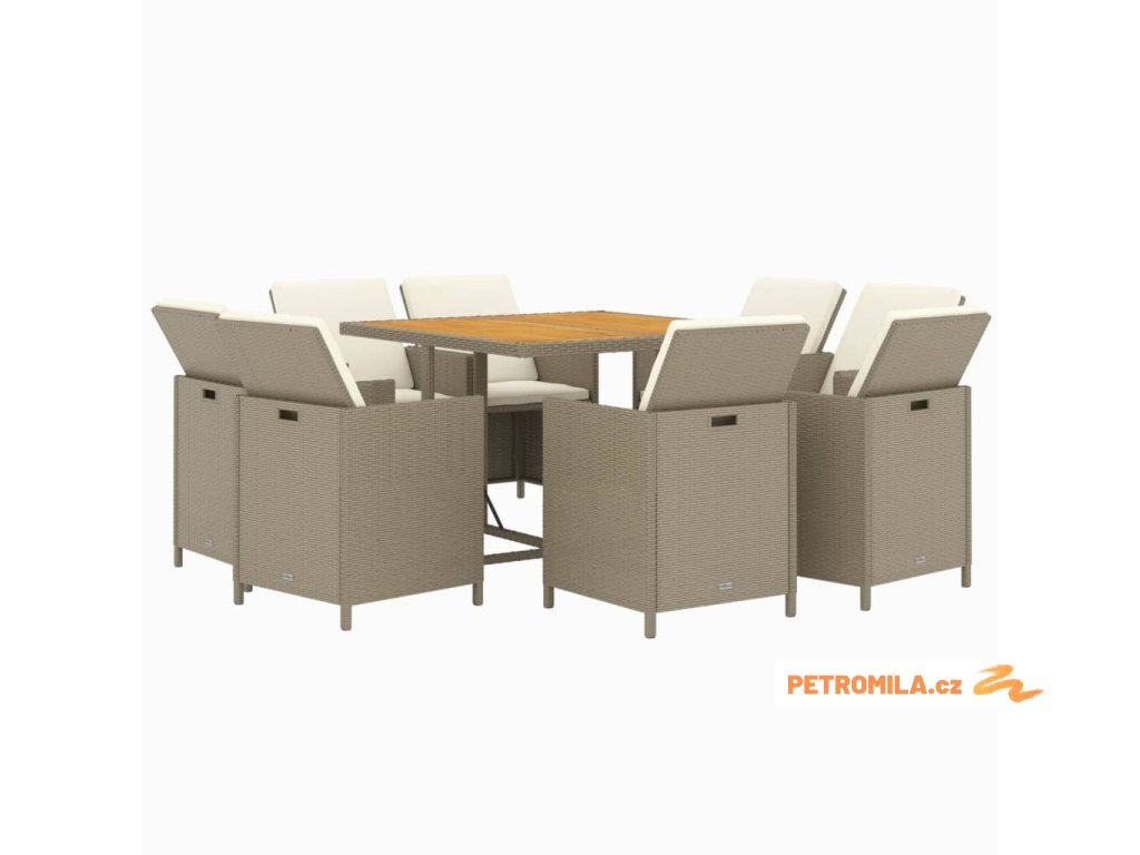 9dílný zahradní jídelní set s poduškami polyratan béžový