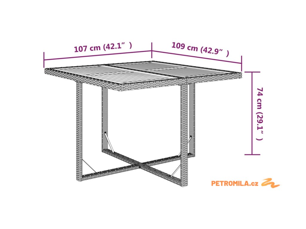 - Rozměry stolu: 109 x 107 x 74 cm (D x Š x V)
