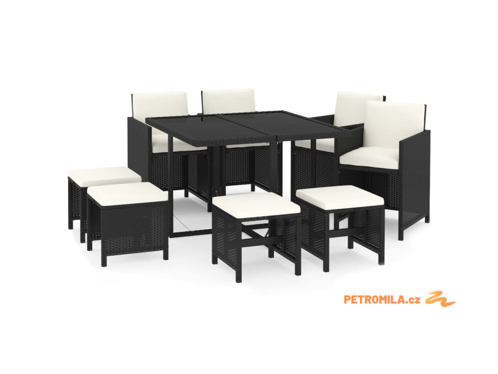9dílný zahradní jídelní set s poduškami polyratan černý