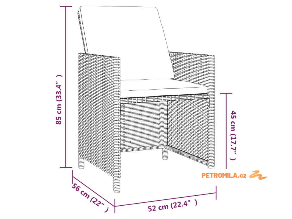 - Rozměry židle: 52 x 56 x 85 cm (Š x H x V)