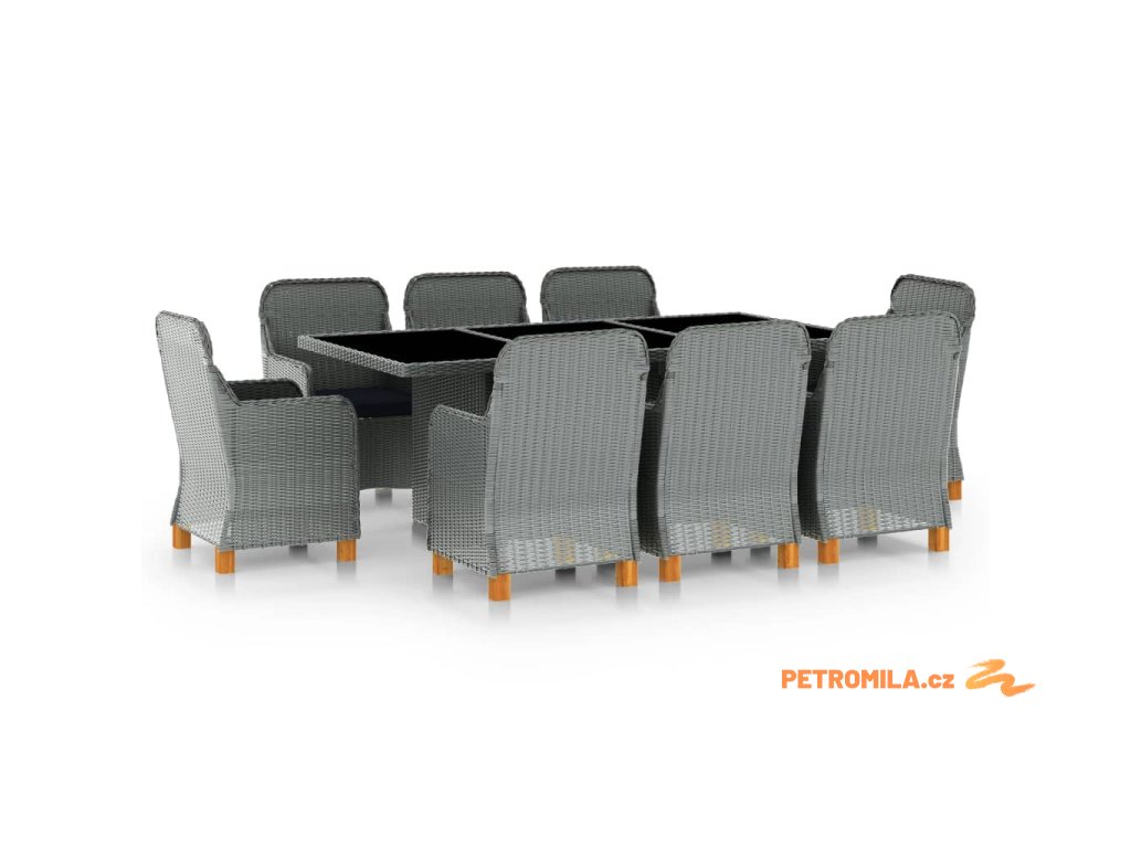9dílný zahradní jídelní set s poduškami polyratan světle šedý
