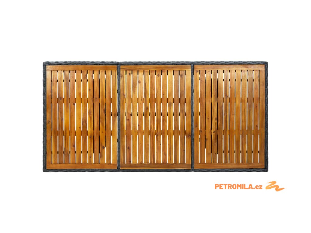 - Materiál: kulatý PE ratan, masivní akáciové dřevo, práškově lakovaná ocel