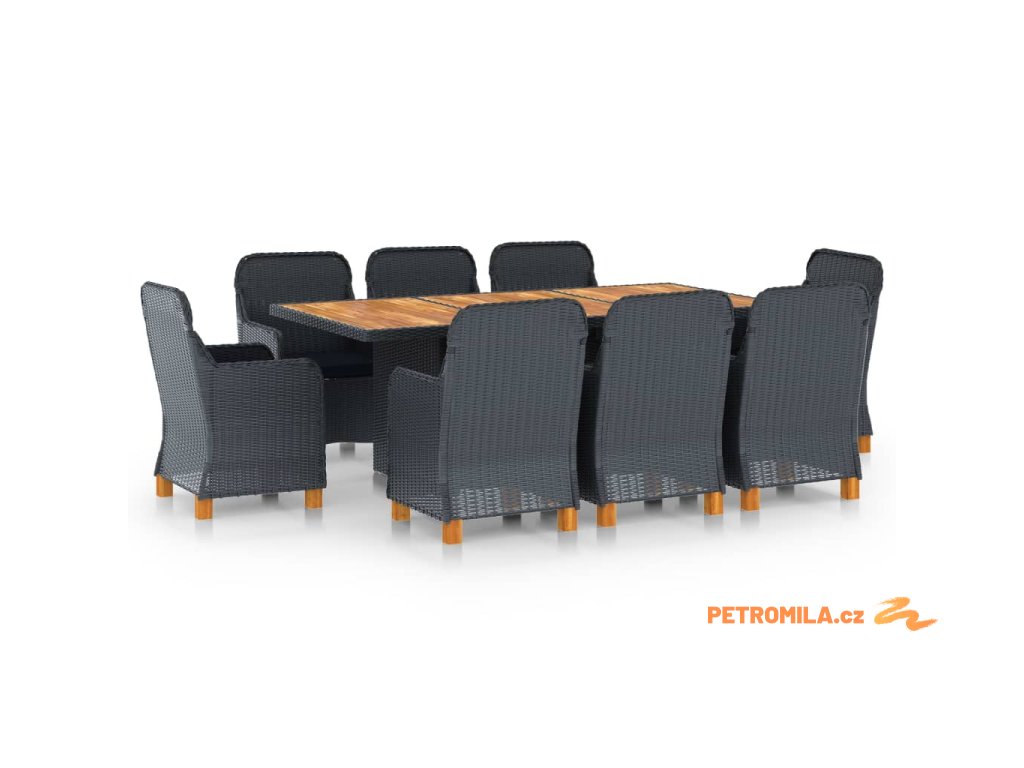 9dílný zahradní jídelní set s poduškami polyratan tmavě šedý