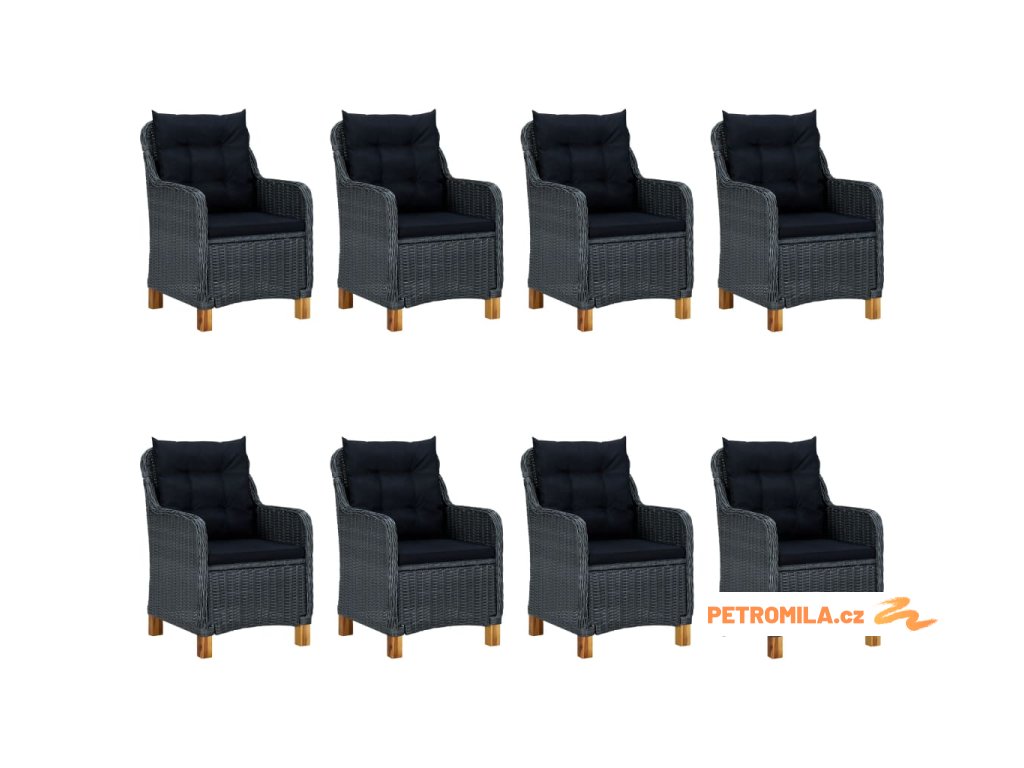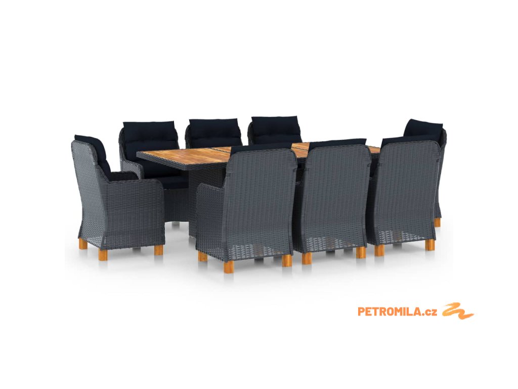 9dílný zahradní jídelní set s poduškami polyratan tmavě šedý