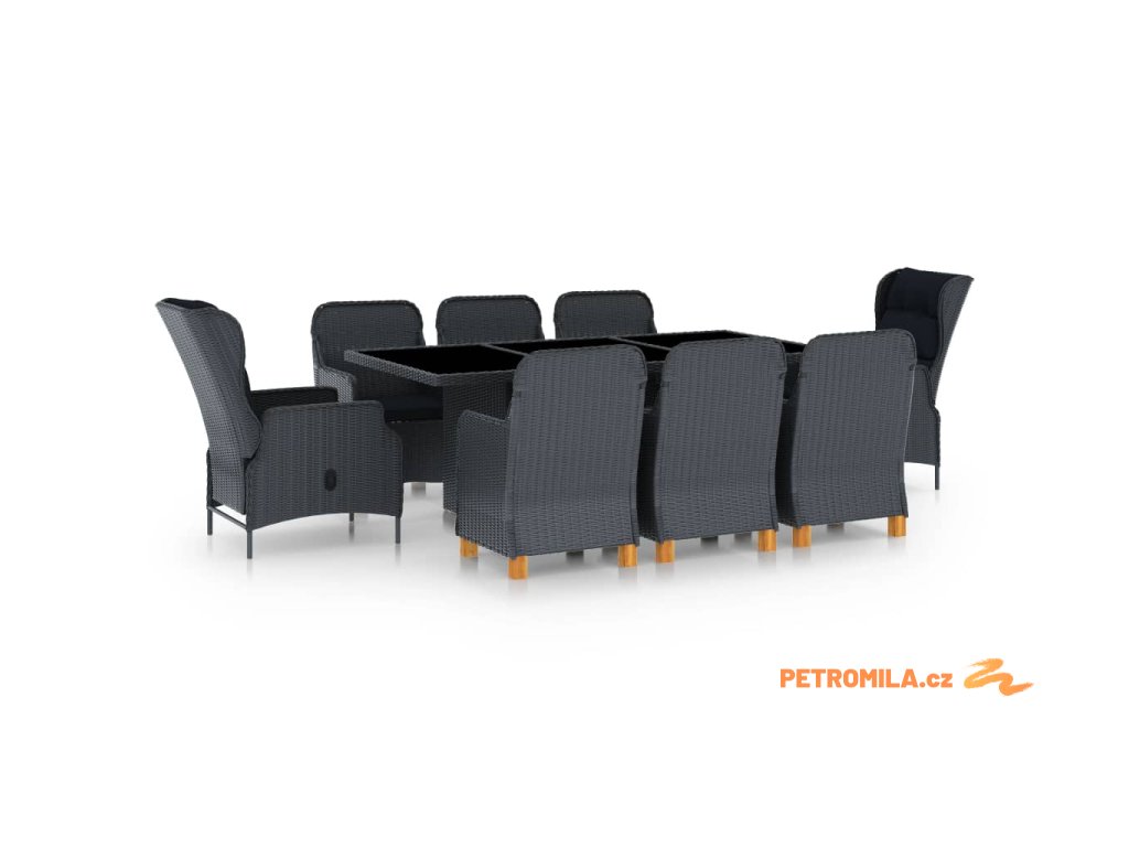 9dílný zahradní jídelní set s poduškami polyratan tmavě šedý