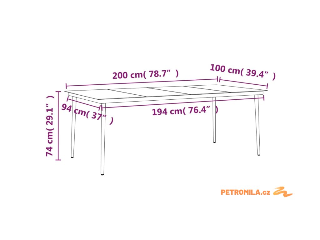 - Rozměry stolu: 200 x 100 x 74 cm (D x Š x V)