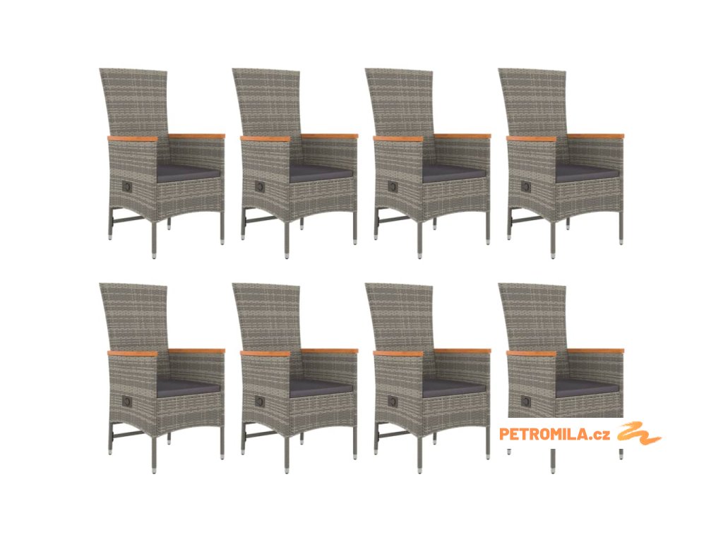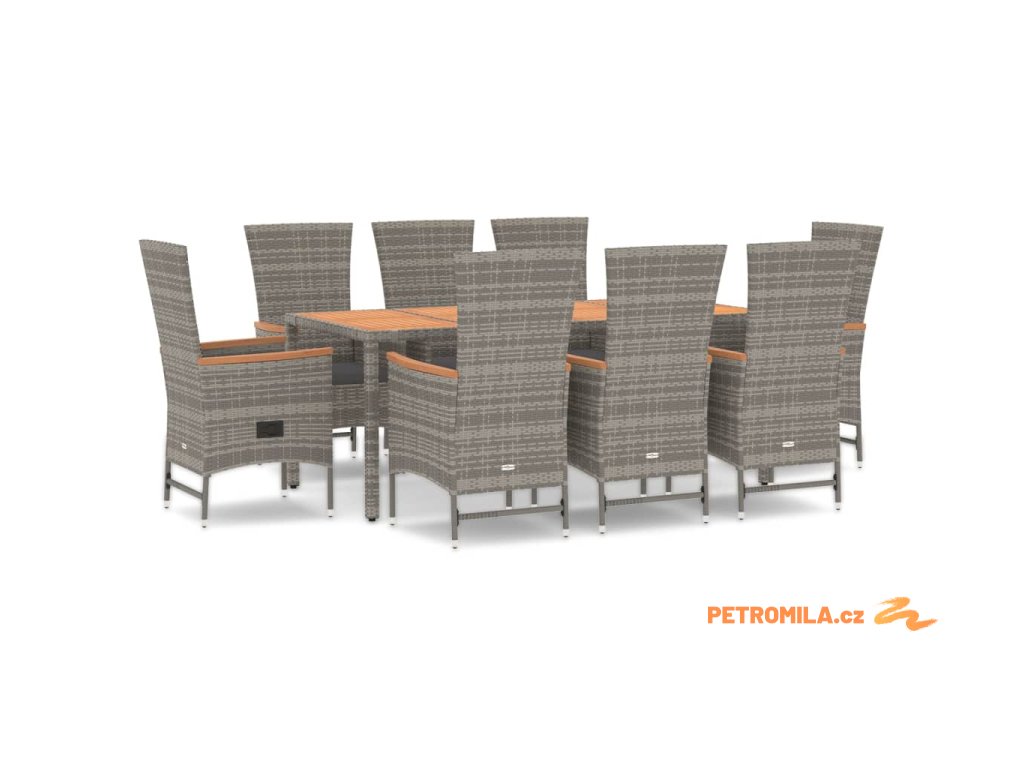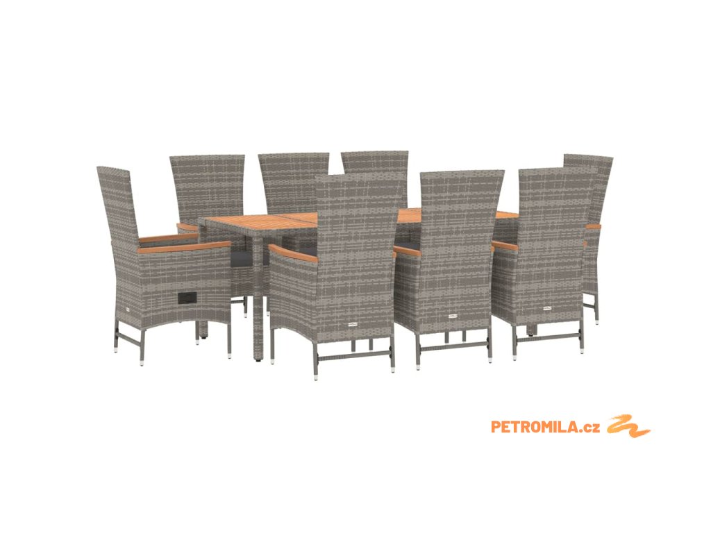 9dílný zahradní jídelní set s poduškami šedý polyratan