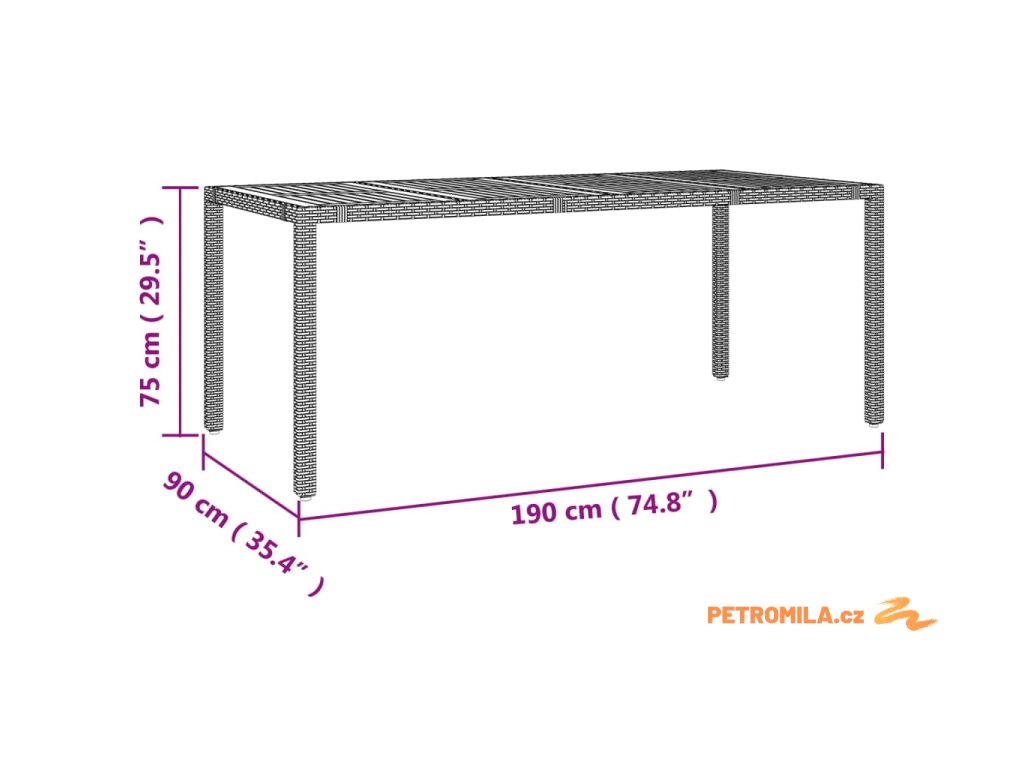 - Rozměry: 190 x 90 x 75 cm (Š x H x V)