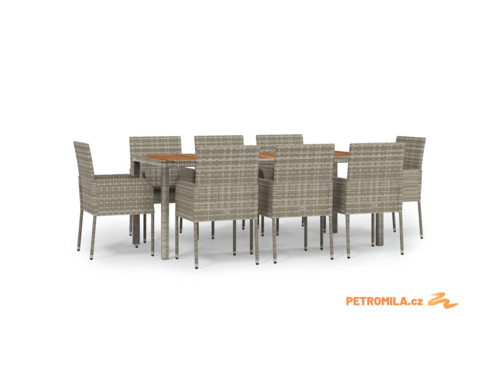 9dílný zahradní jídelní set s poduškami šedý polyratan