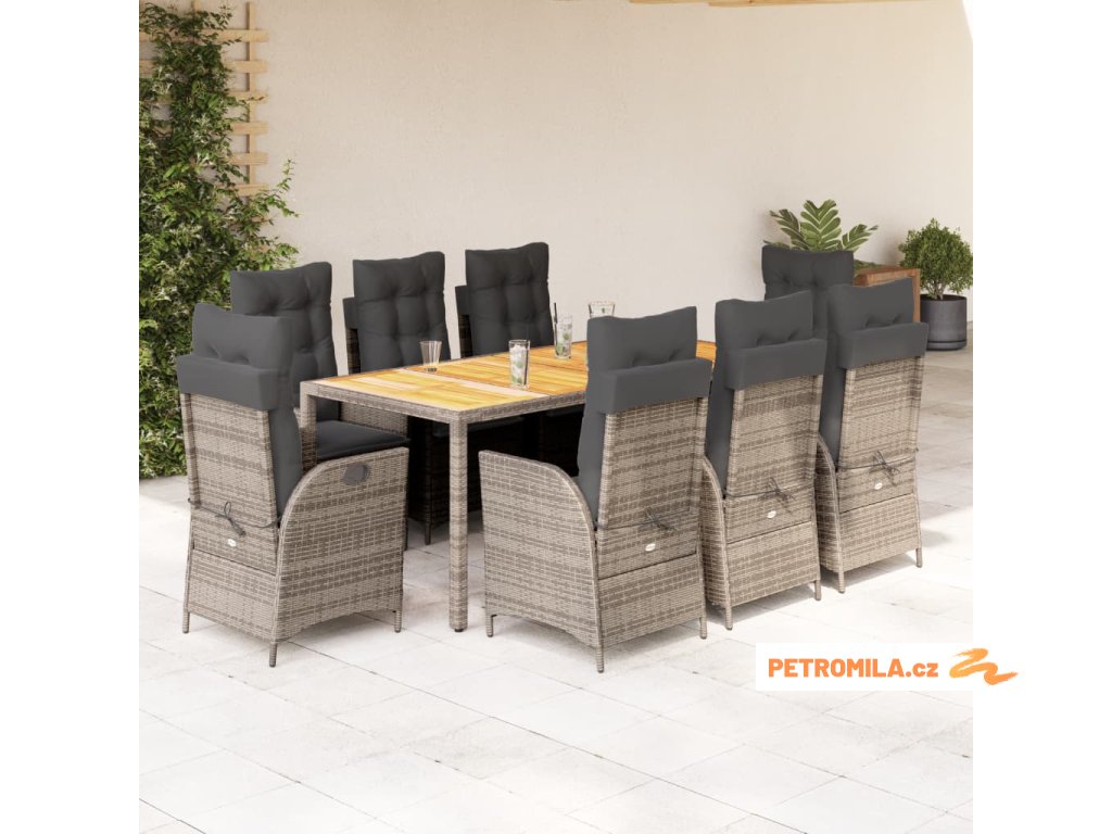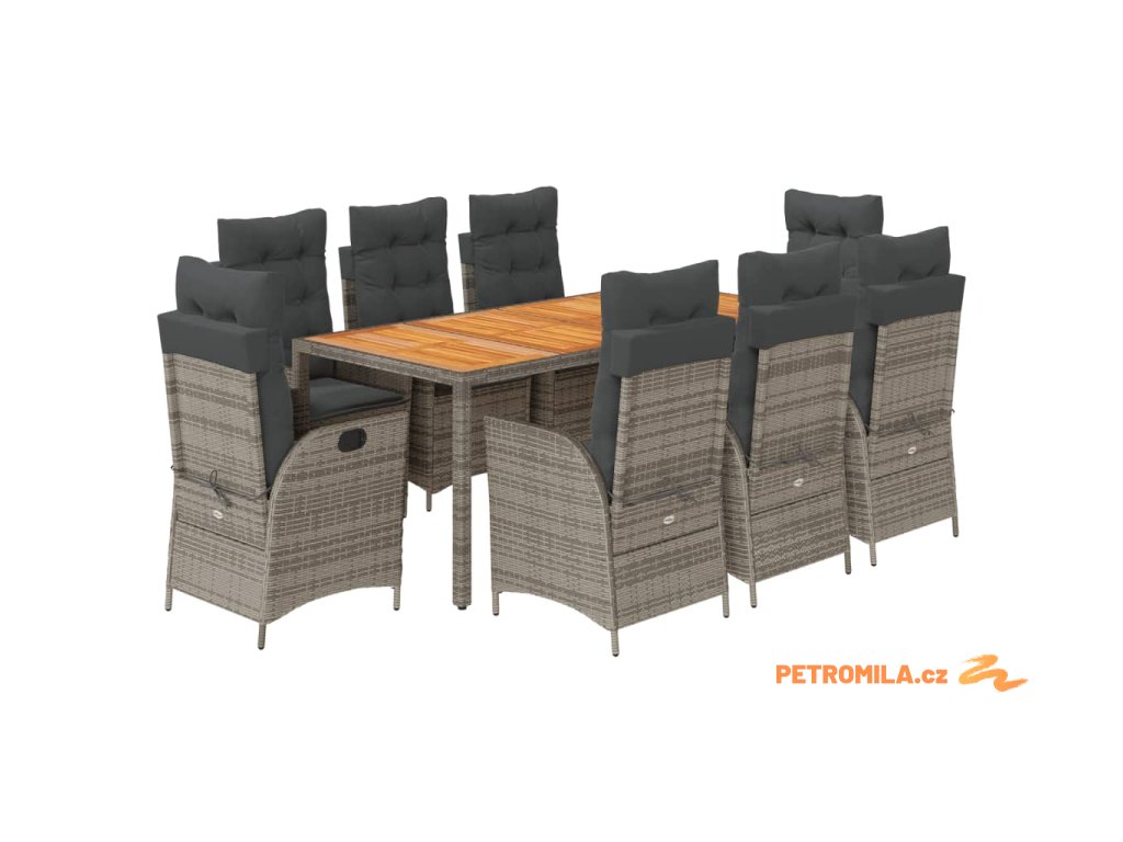 9dílný zahradní jídelní set s poduškami šedý polyratan