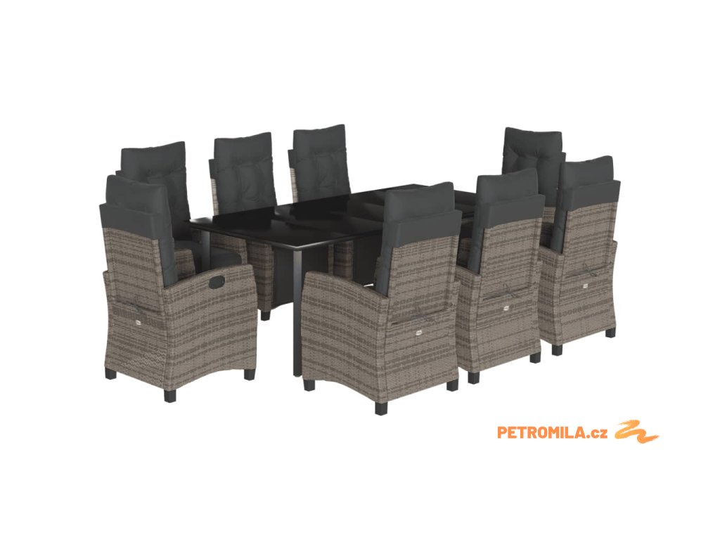 9dílný zahradní jídelní set s poduškami šedý polyratan