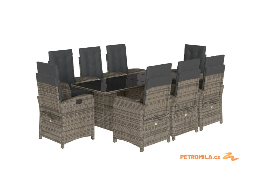9dílný zahradní jídelní set s poduškami šedý polyratan