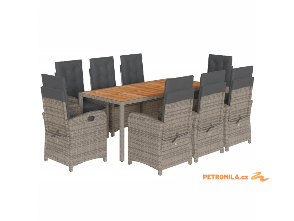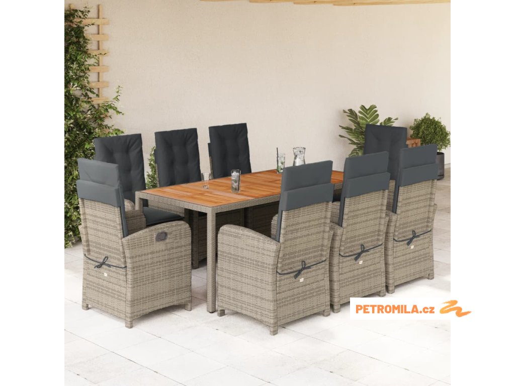 9dílný zahradní jídelní set s poduškami šedý polyratan