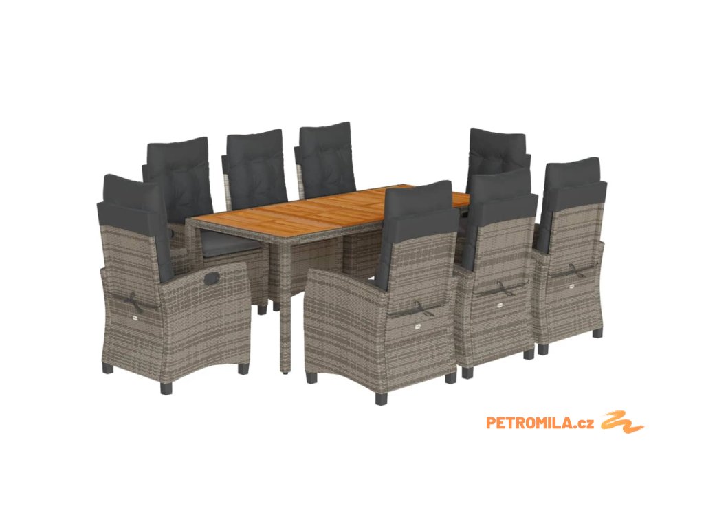 9dílný zahradní jídelní set s poduškami šedý polyratan