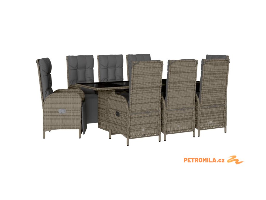 9dílný zahradní jídelní set s poduškami šedý polyratan