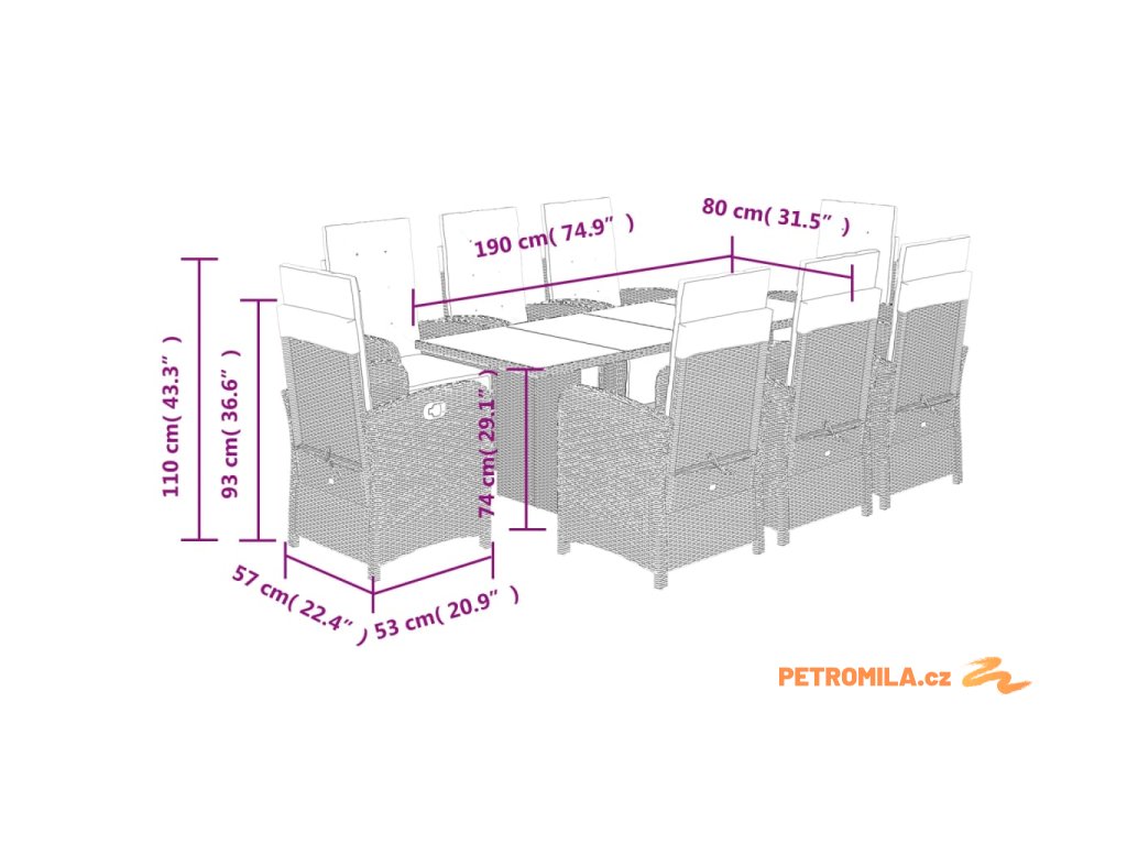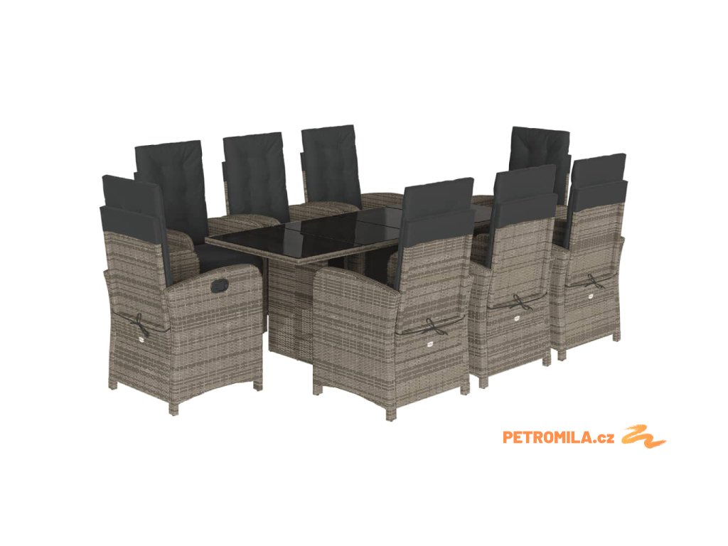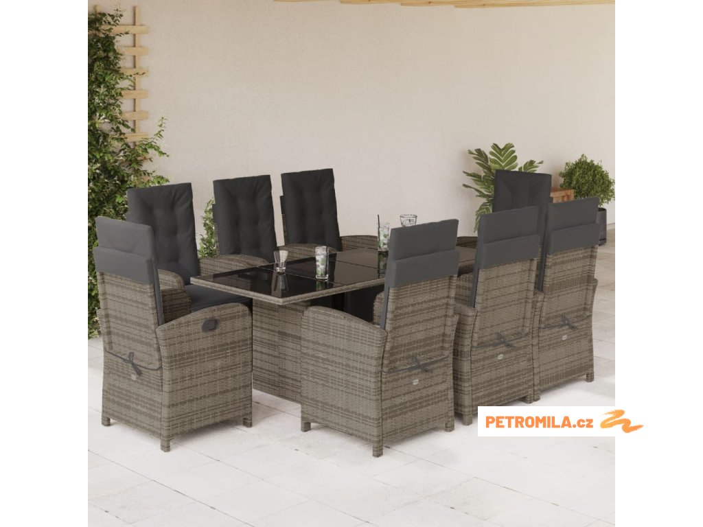 9dílný zahradní jídelní set s poduškami šedý polyratan