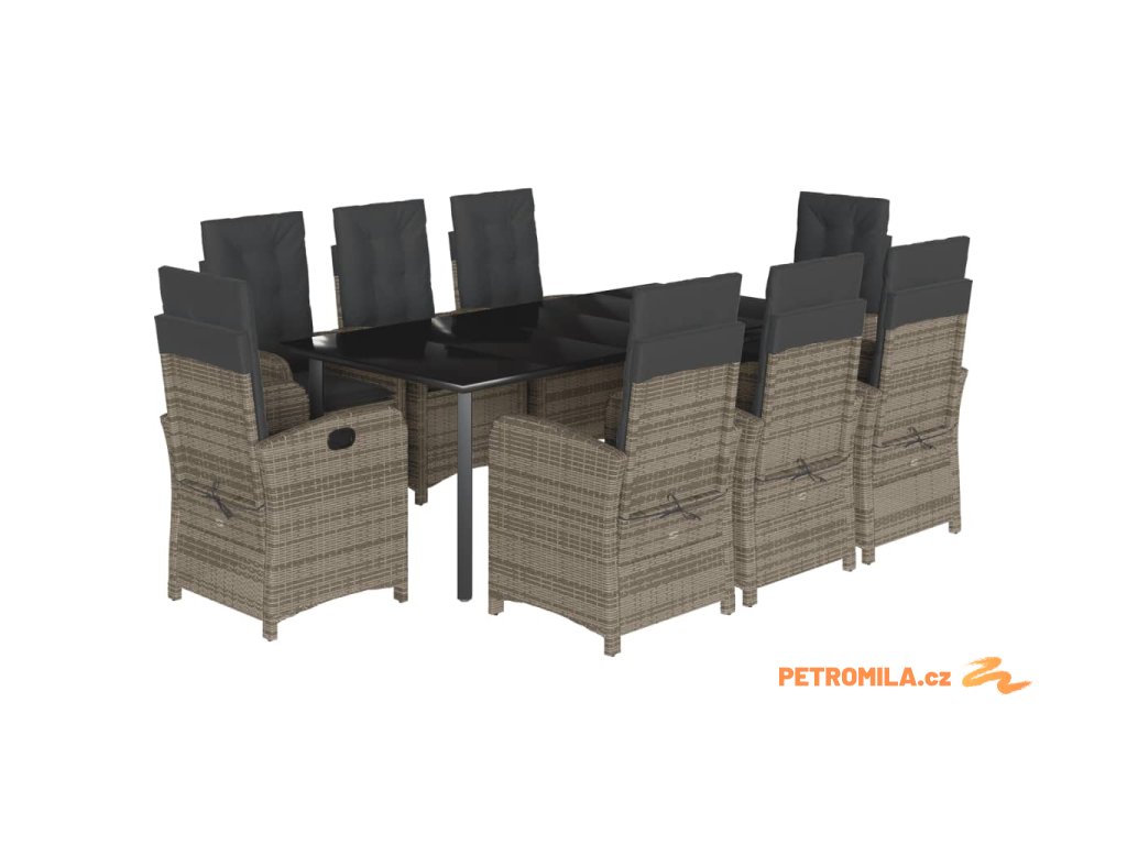 9dílný zahradní jídelní set s poduškami šedý polyratan