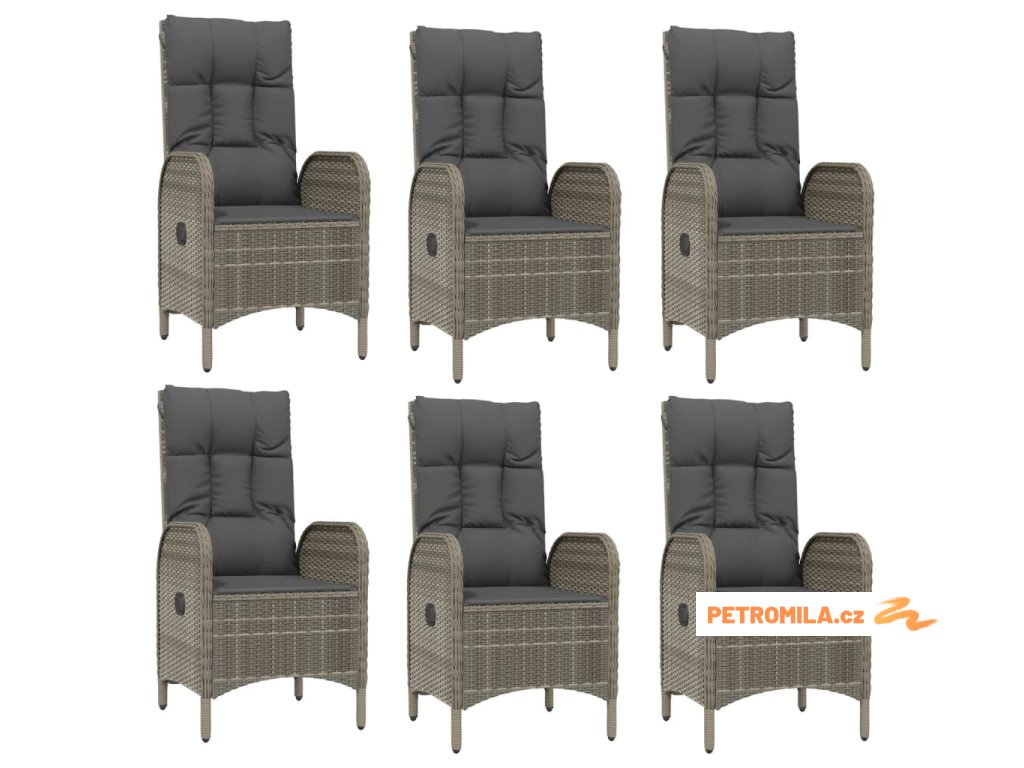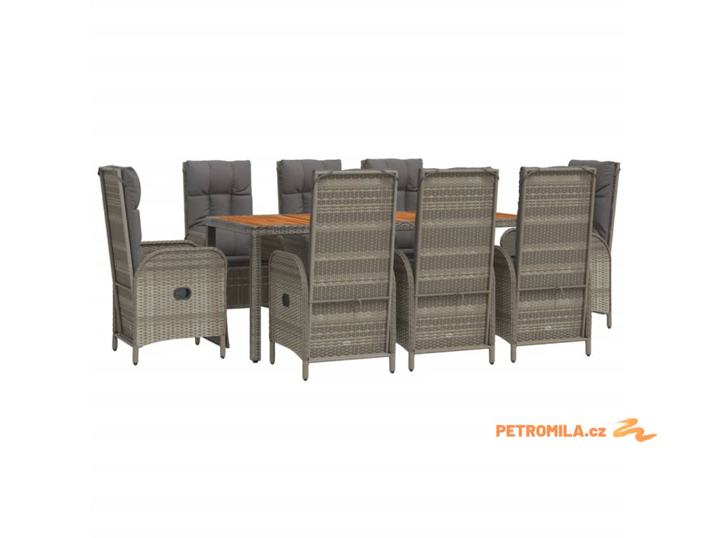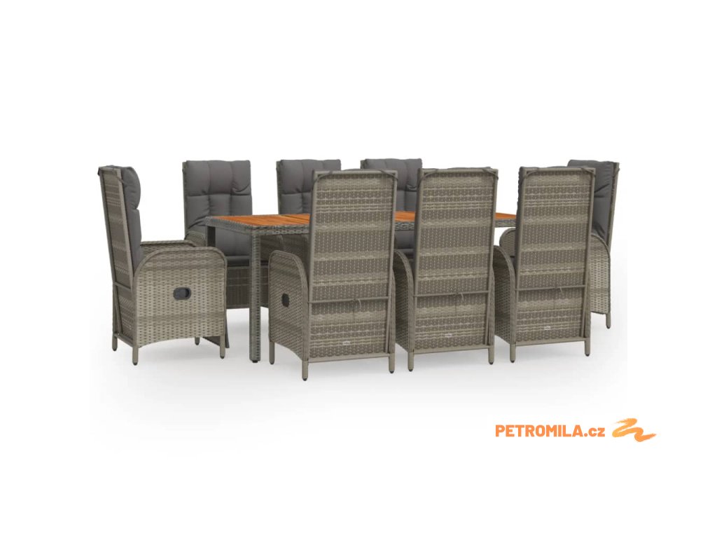 9dílný zahradní jídelní set s poduškami šedý polyratan
