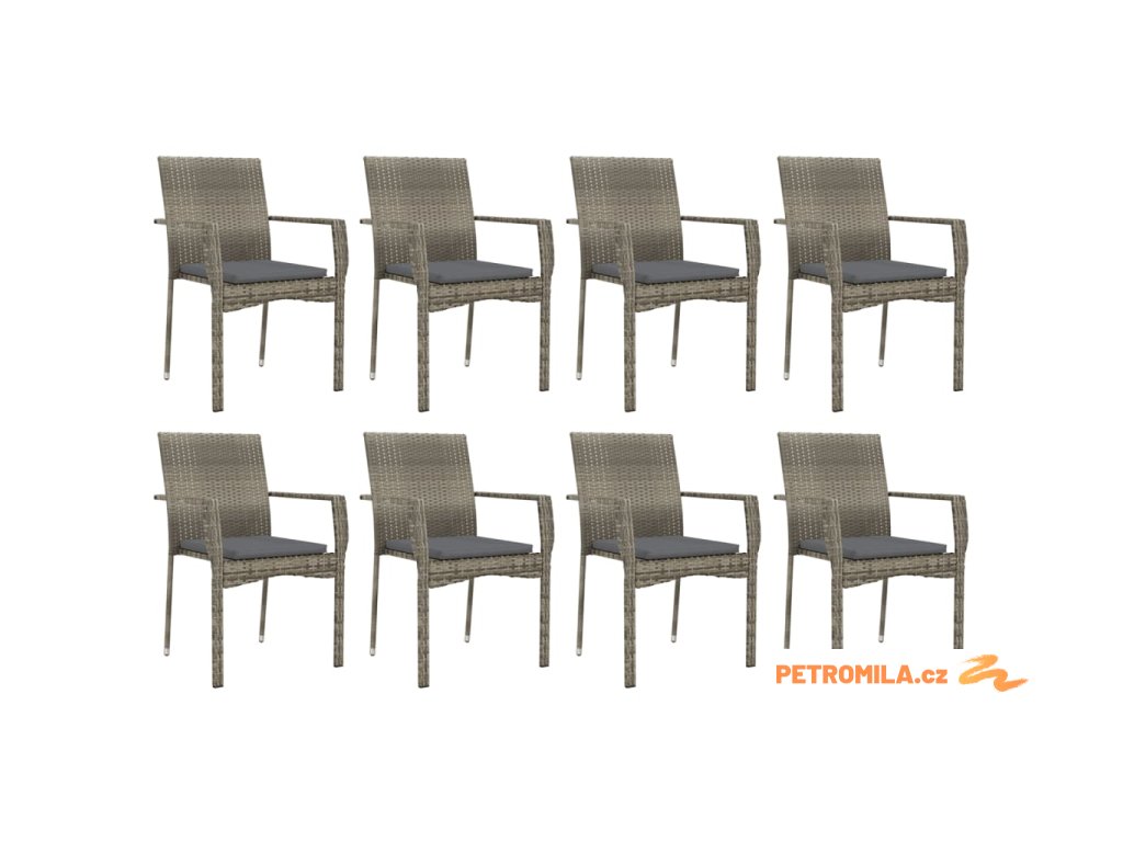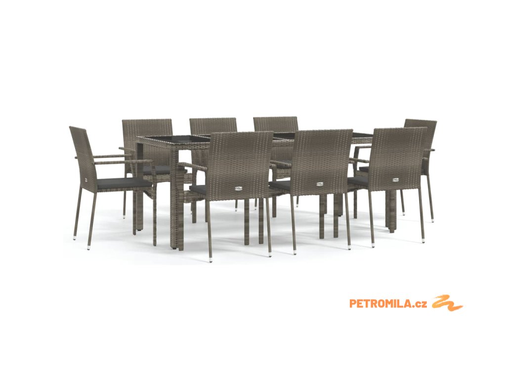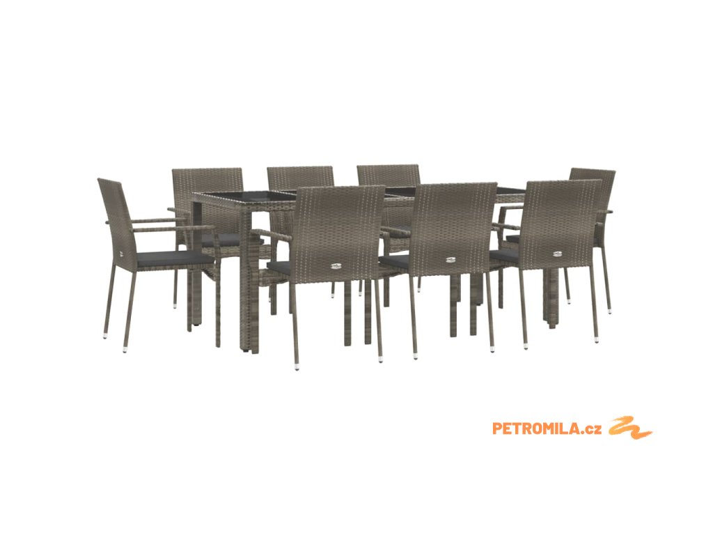 9dílný zahradní jídelní set s poduškami šedý polyratan