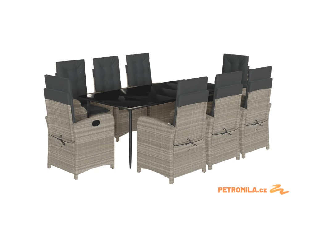 9dílný zahradní jídelní set s poduškami světle šedý polyratan
