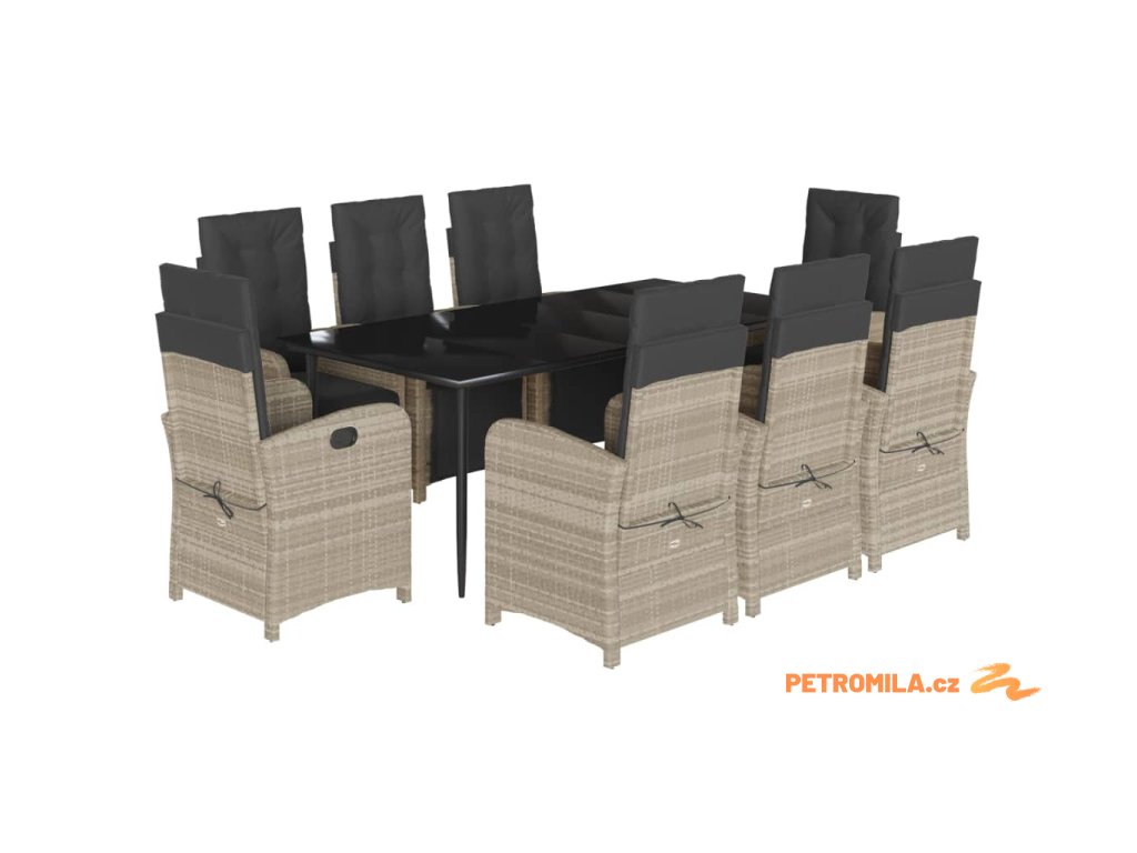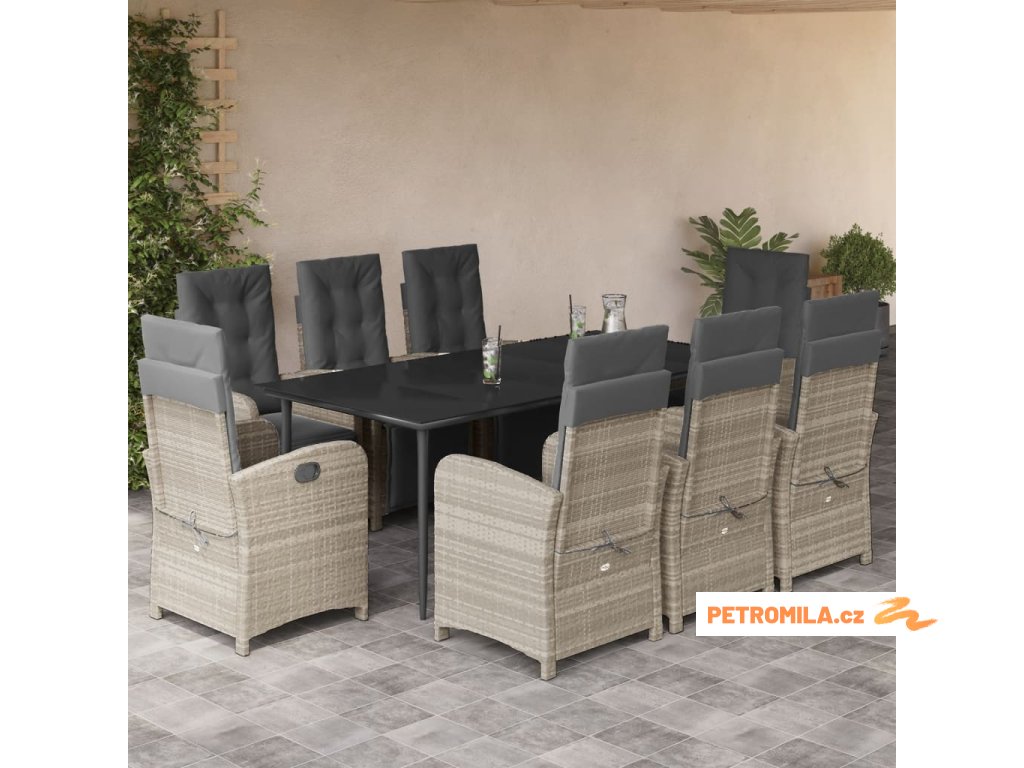 9dílný zahradní jídelní set s poduškami světle šedý polyratan