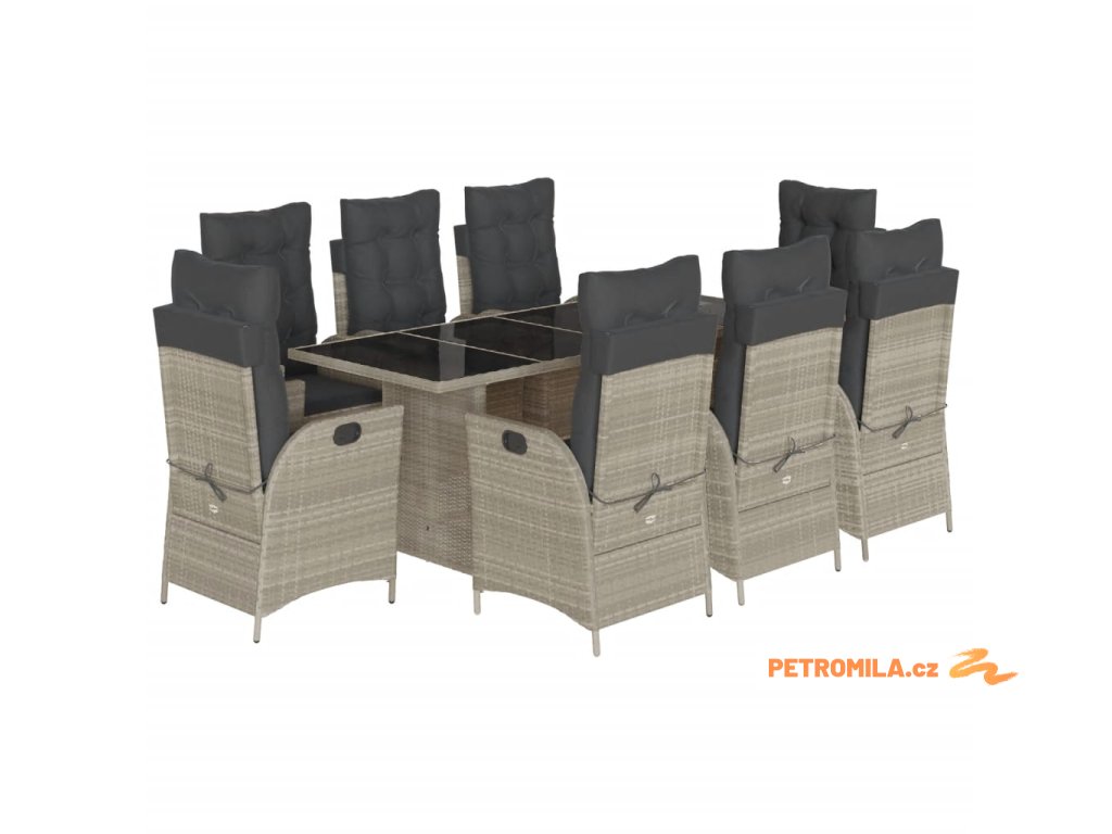 9dílný zahradní jídelní set s poduškami světle šedý polyratan