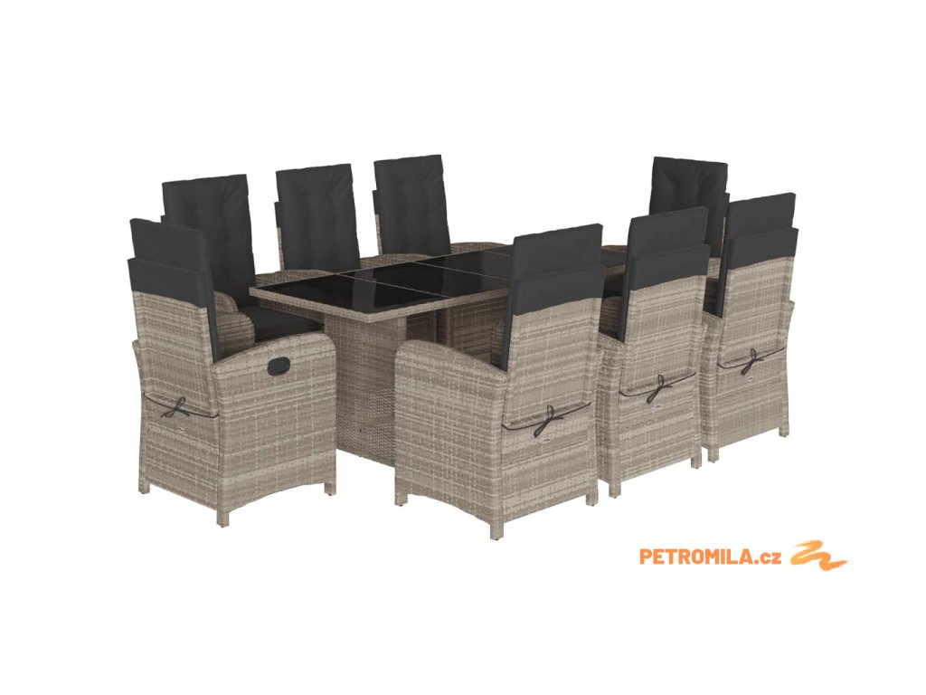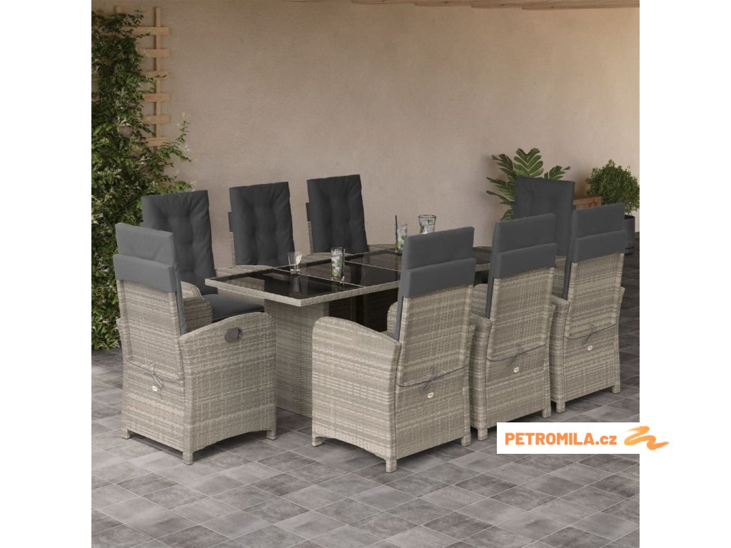 9dílný zahradní jídelní set s poduškami světle šedý polyratan
