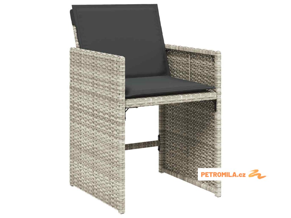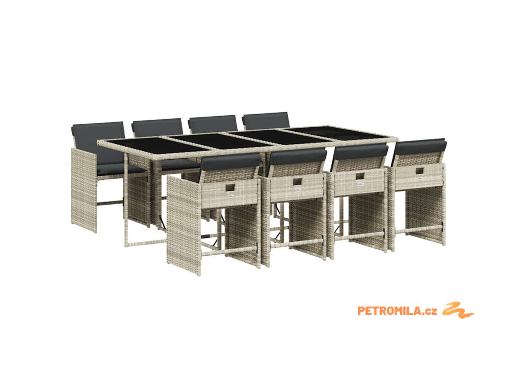 9dílný zahradní jídelní set s poduškami světle šedý polyratan