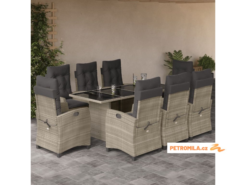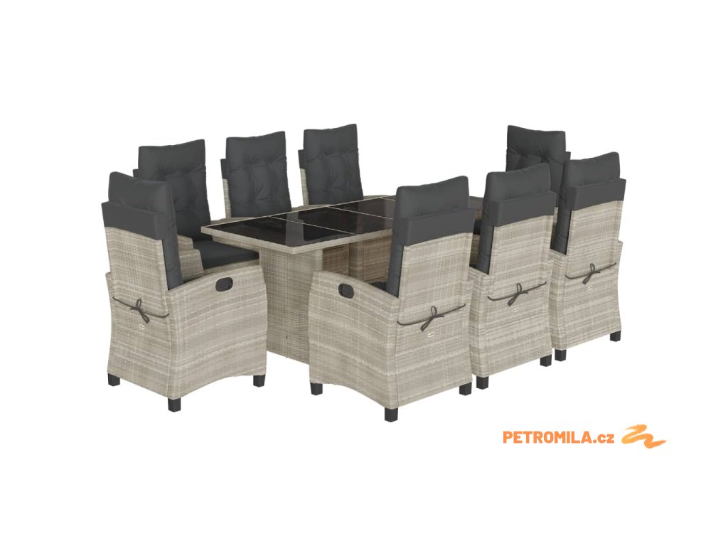 9dílný zahradní jídelní set s poduškami světle šedý polyratan