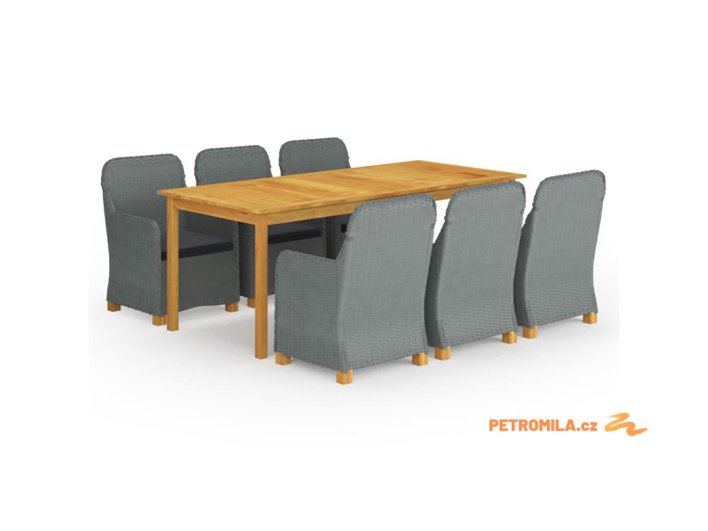 Jídelní stůl je zhotovený z masivního akáciového dřeva s olejovaným povrchem, takže je stabilní, odolný a nenáročný na údržbu. Zahradní židle mají rám z práškově lakované oceli, opletený kulatým PE ratanem, který výborně vzdoruje klimatickým vlivům. Dlouho vám proto vydrží a snadno je očistíte. Hustě polstrované podušky vám při odpočinku zaručí mimořádný komfort. Jejich potahy jsou opatřené zipem, abyste je mohli bez námahy stáhnout a oprat. Nohy z masivního akáciového dřeva přispívají k lepší stabilitě a delší životnosti. Vzhledem k jejich lehké konstrukci lze jídelní židle jednoduše přesouvat, kam potřebujete.