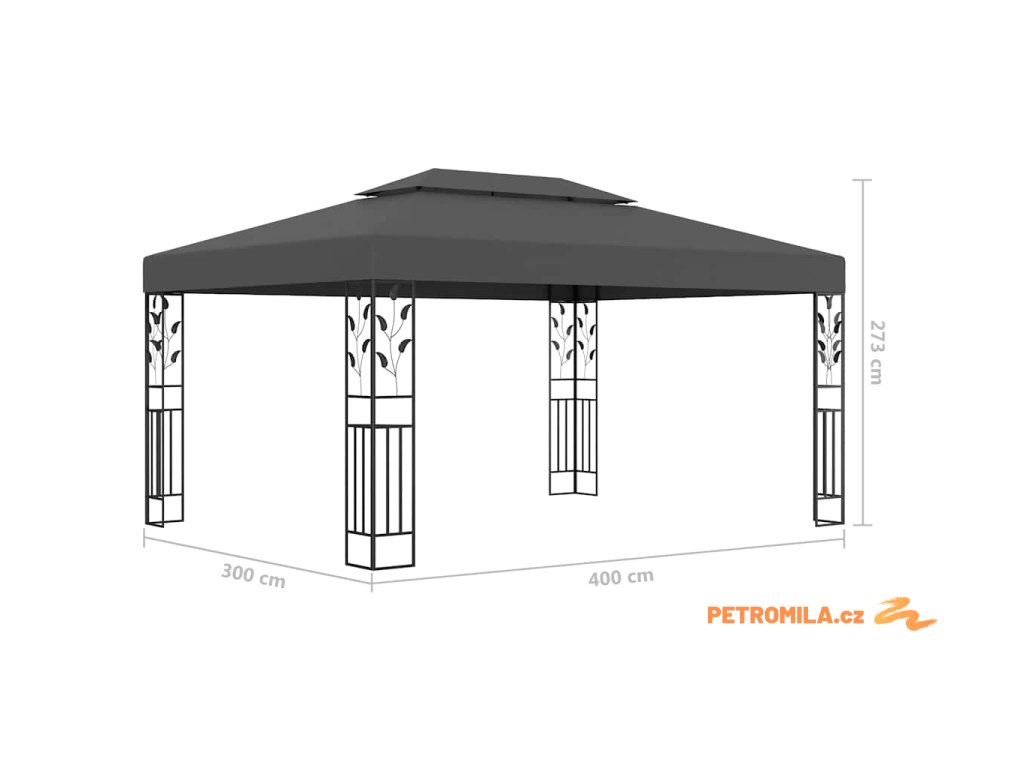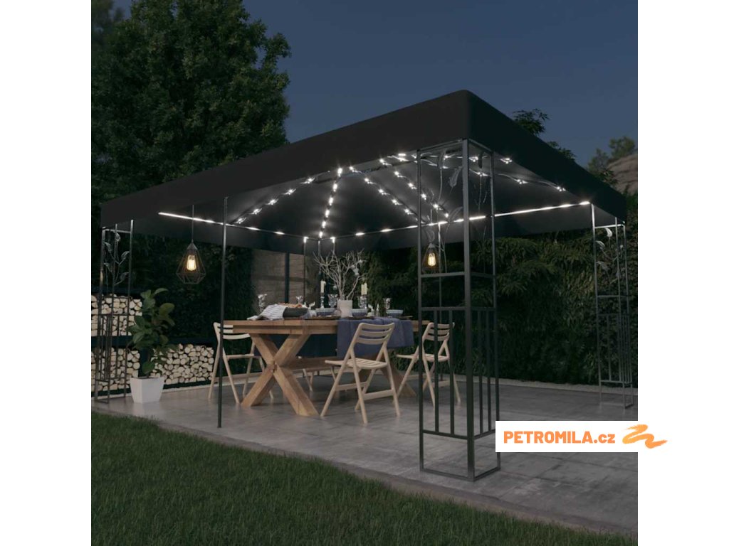Altán s dvojitou stříškou světelné LED řetězy 3x4 m antracitový