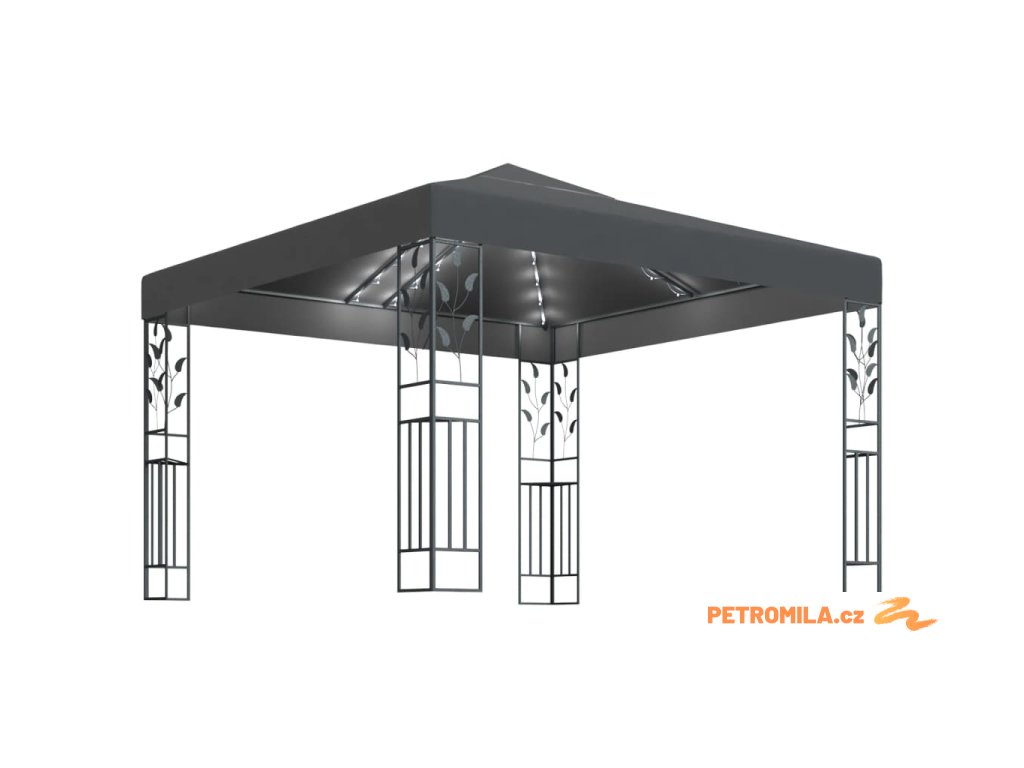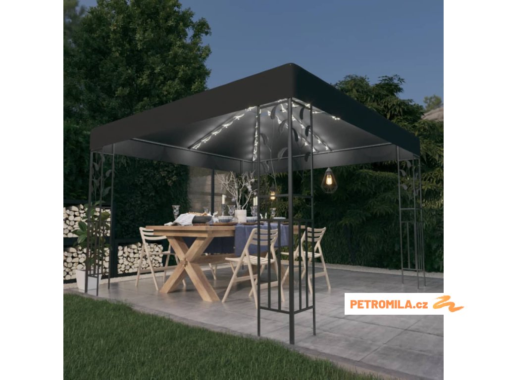 Altán se světelnými LED řetězy 3 x 3 m antracitový