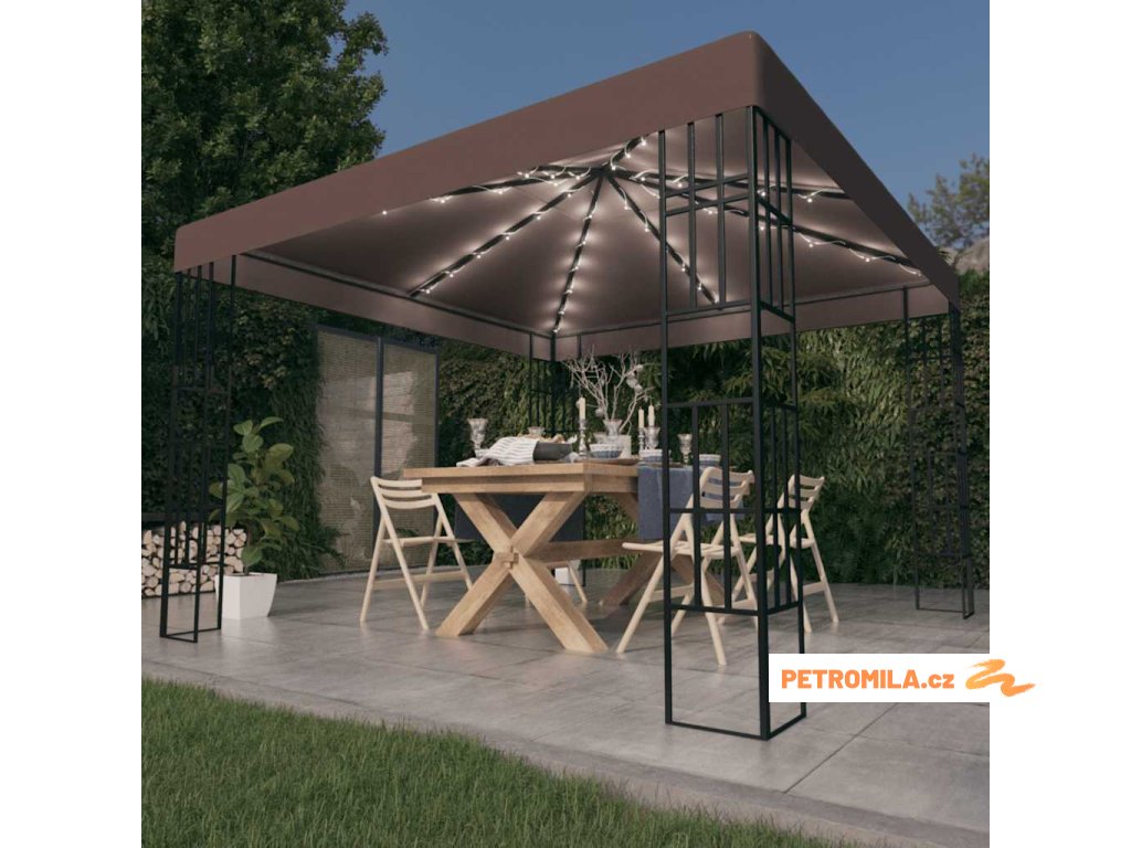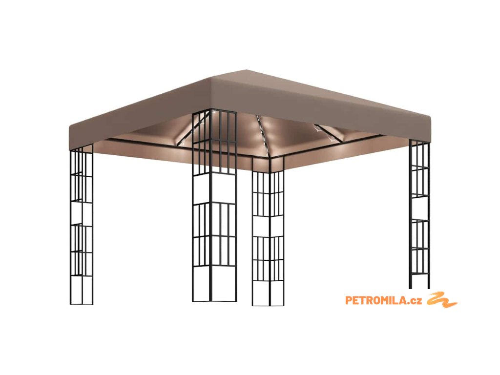 Altán se světelnými LED řetězy 3 x 3 m taupe