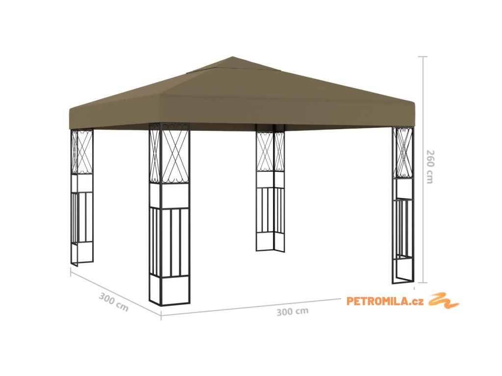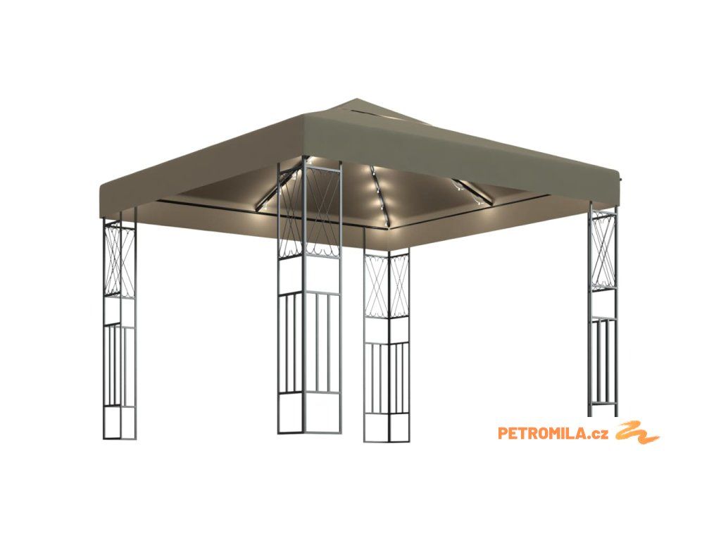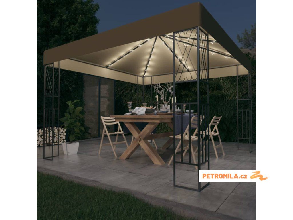 Altán se světelnými LED řetězy 3 x 3 m taupe textil