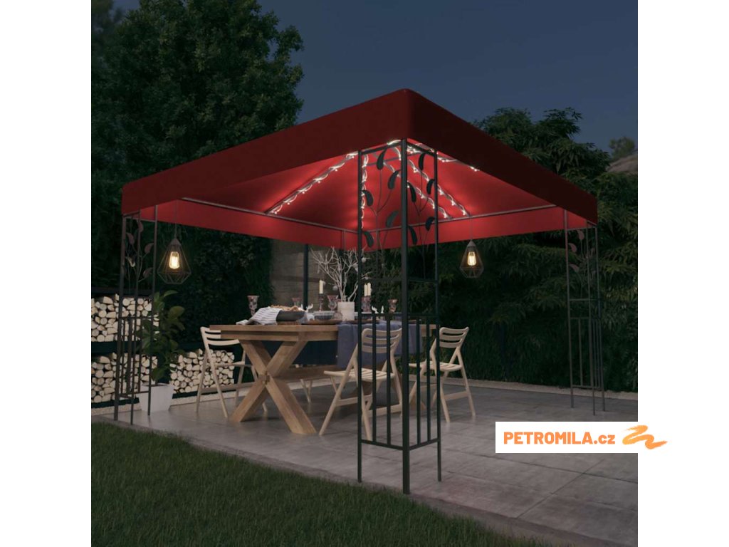 Altán se světelnými LED řetězy 3 x 3 m vínový