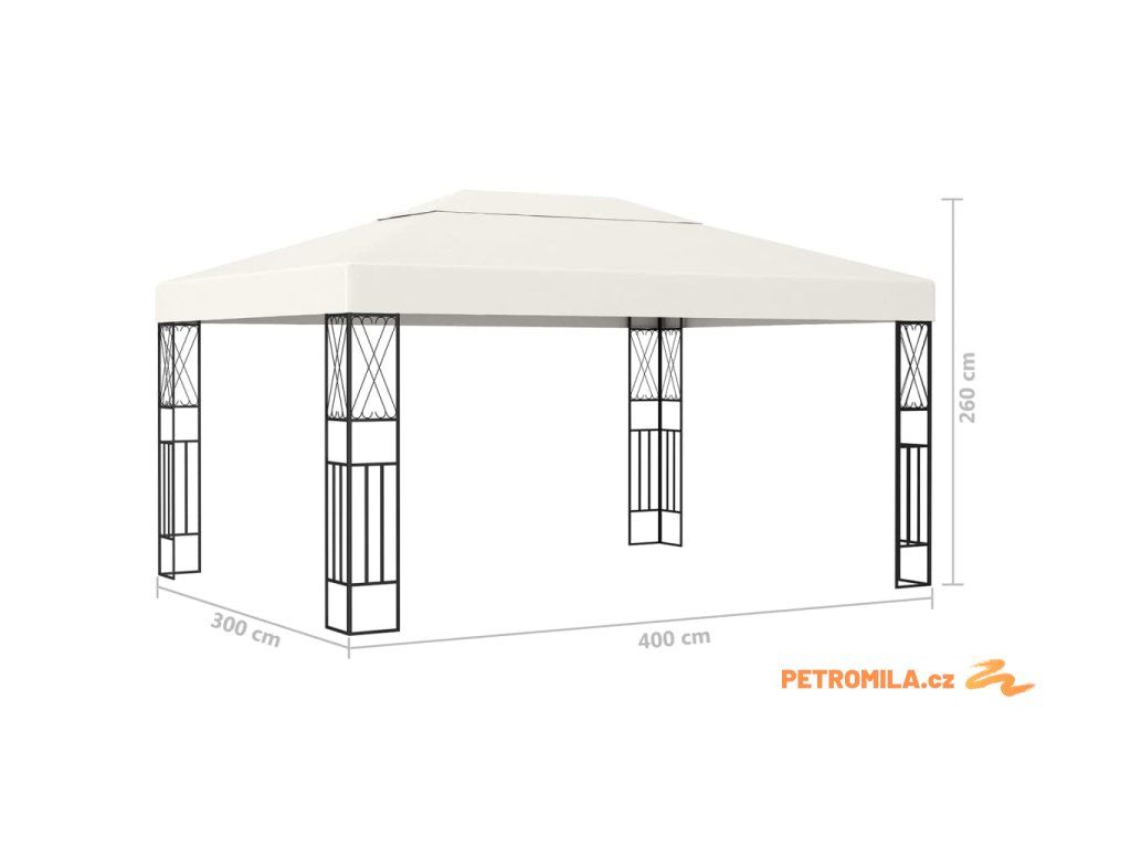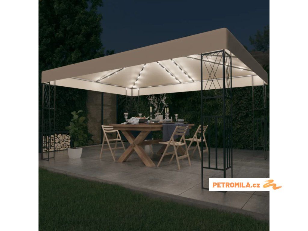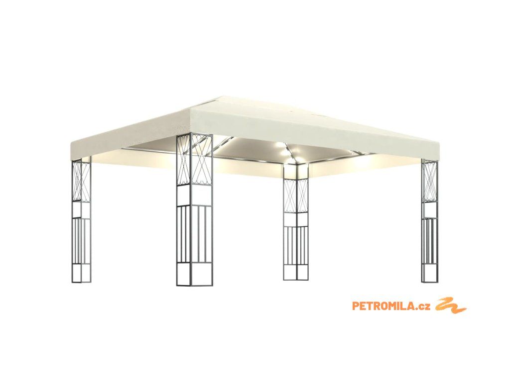 Altán se světelnými LED řetězy 3 x 4 m krémový textil