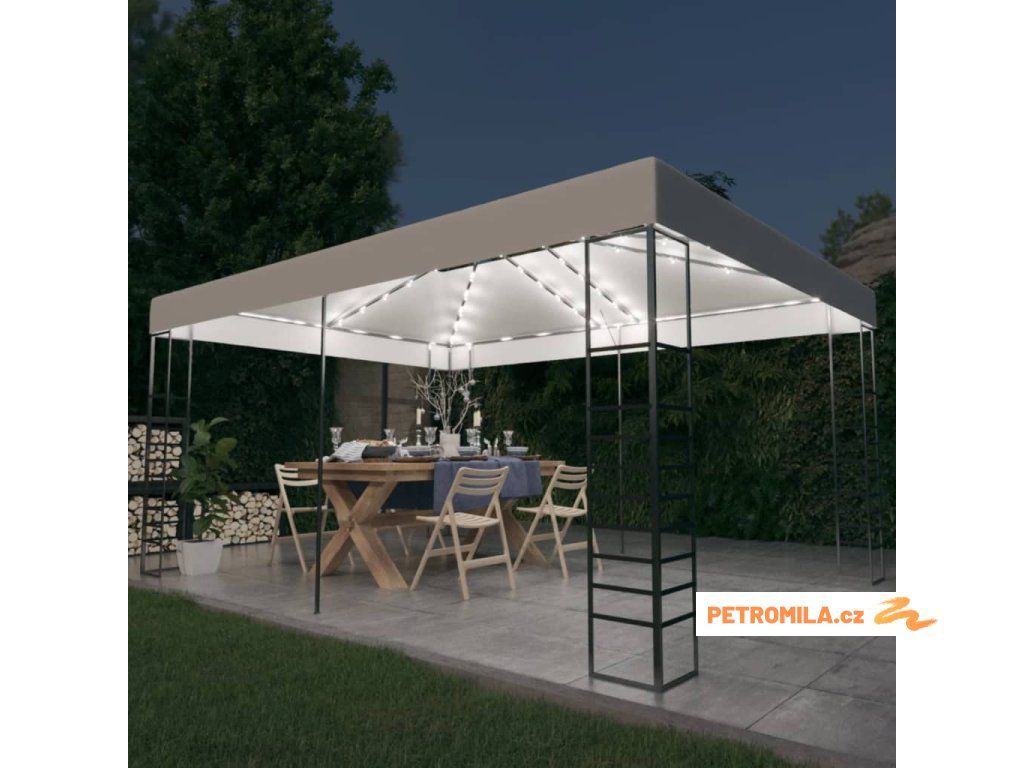 Altán se světelnými LED řetězy 4 x 3 x 2,7 m bílý