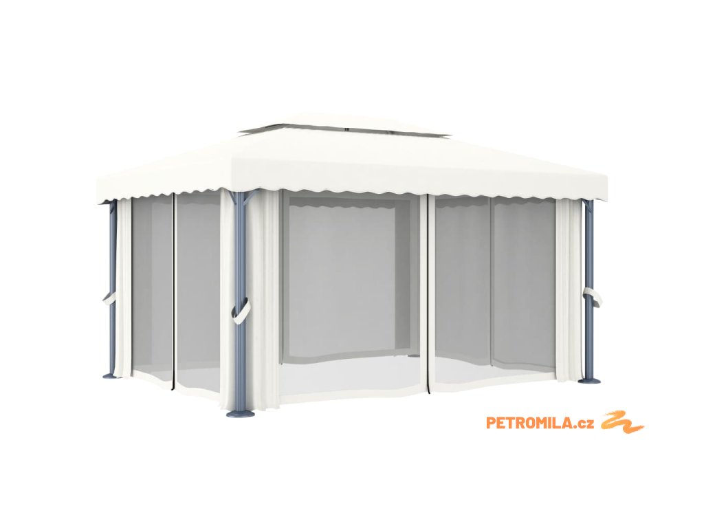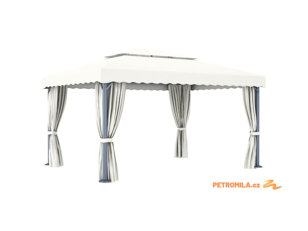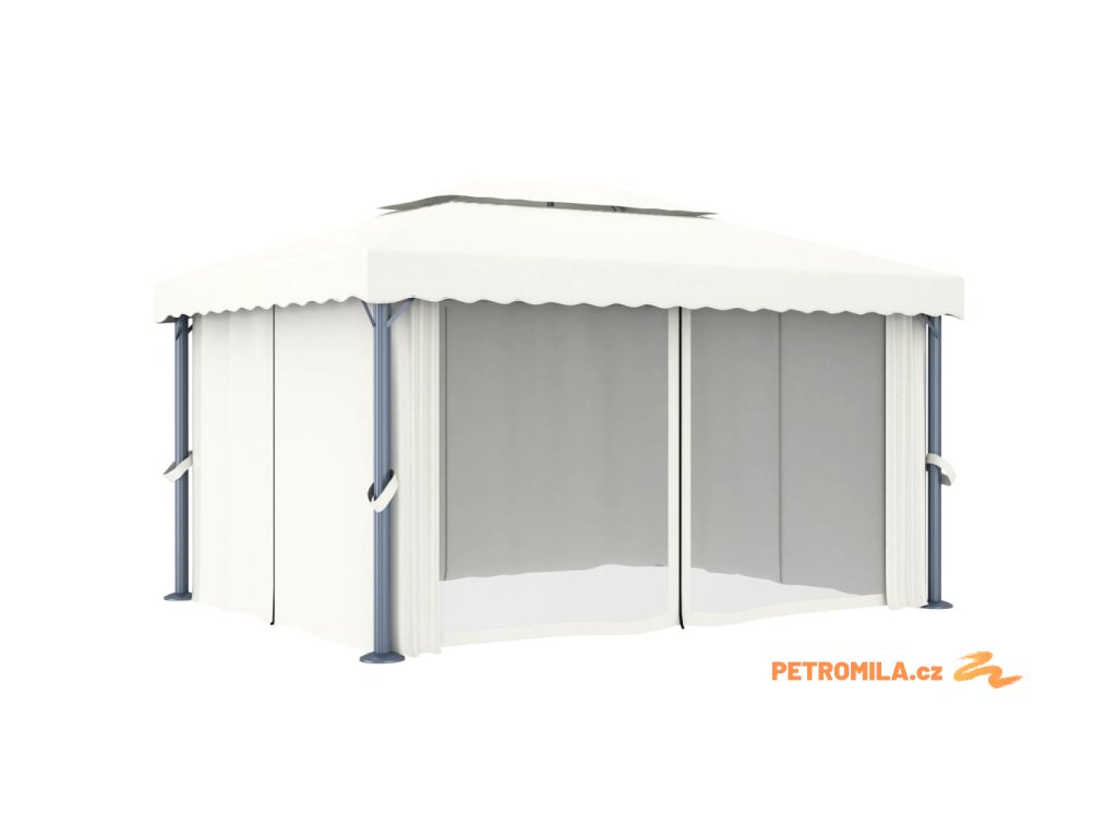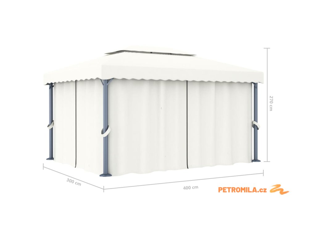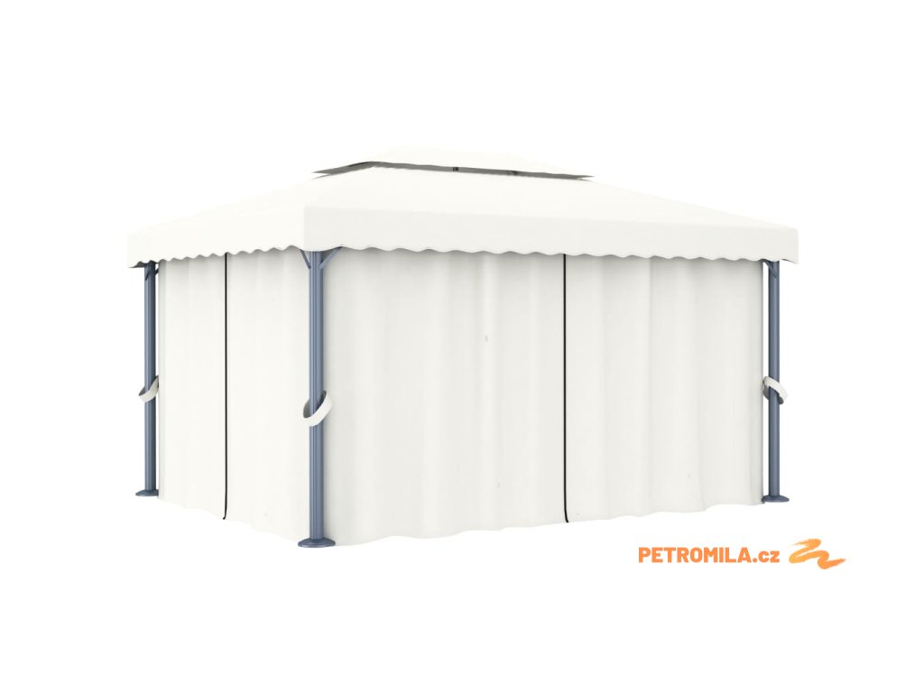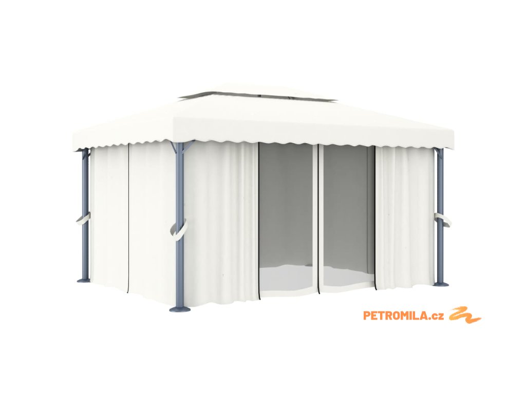 Altán se závěsy 4 x 3 m krémově bílý hliník