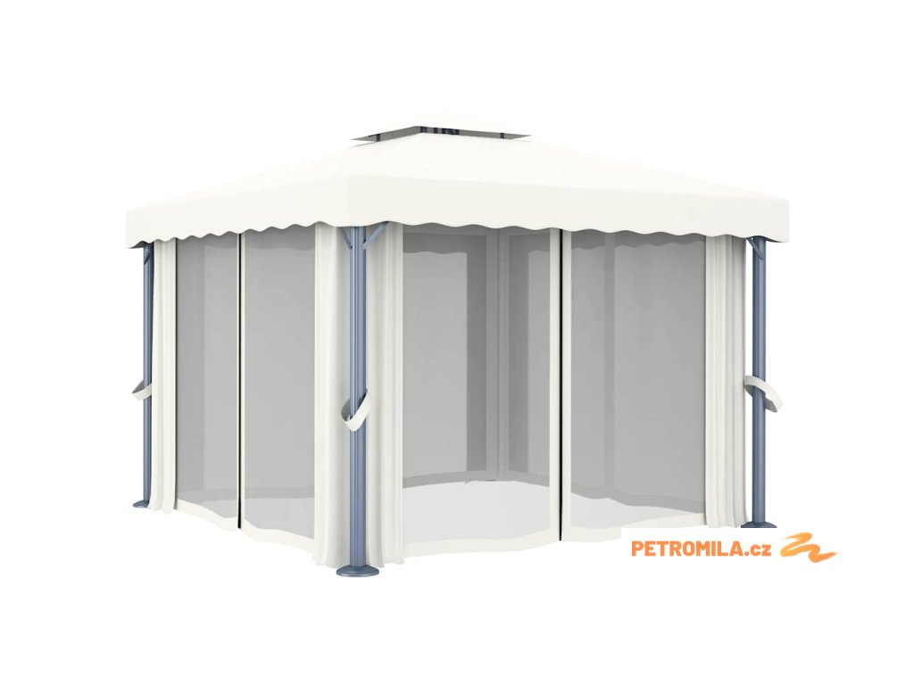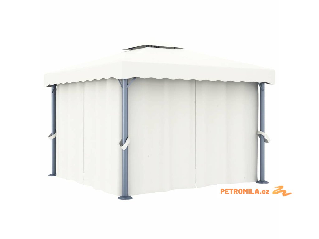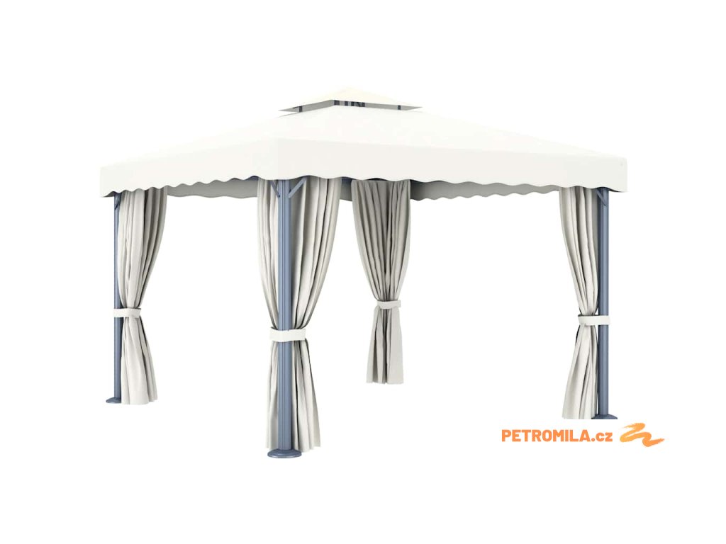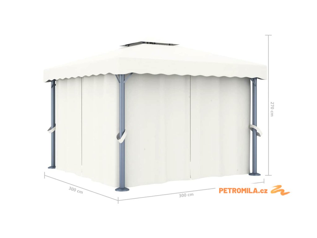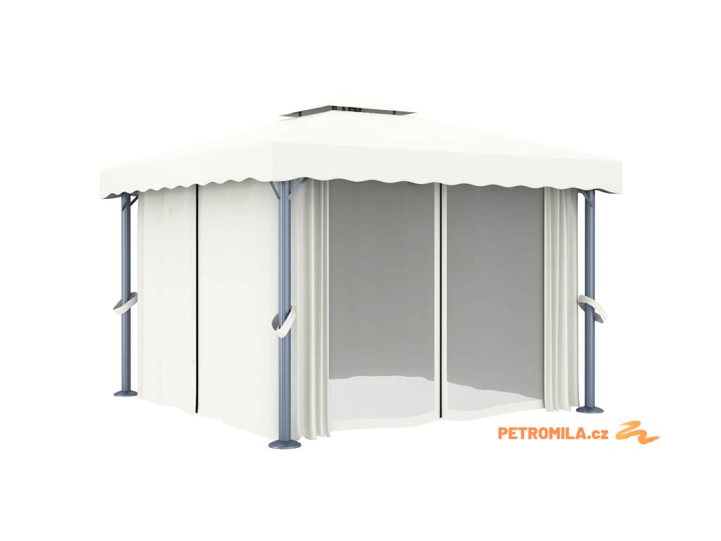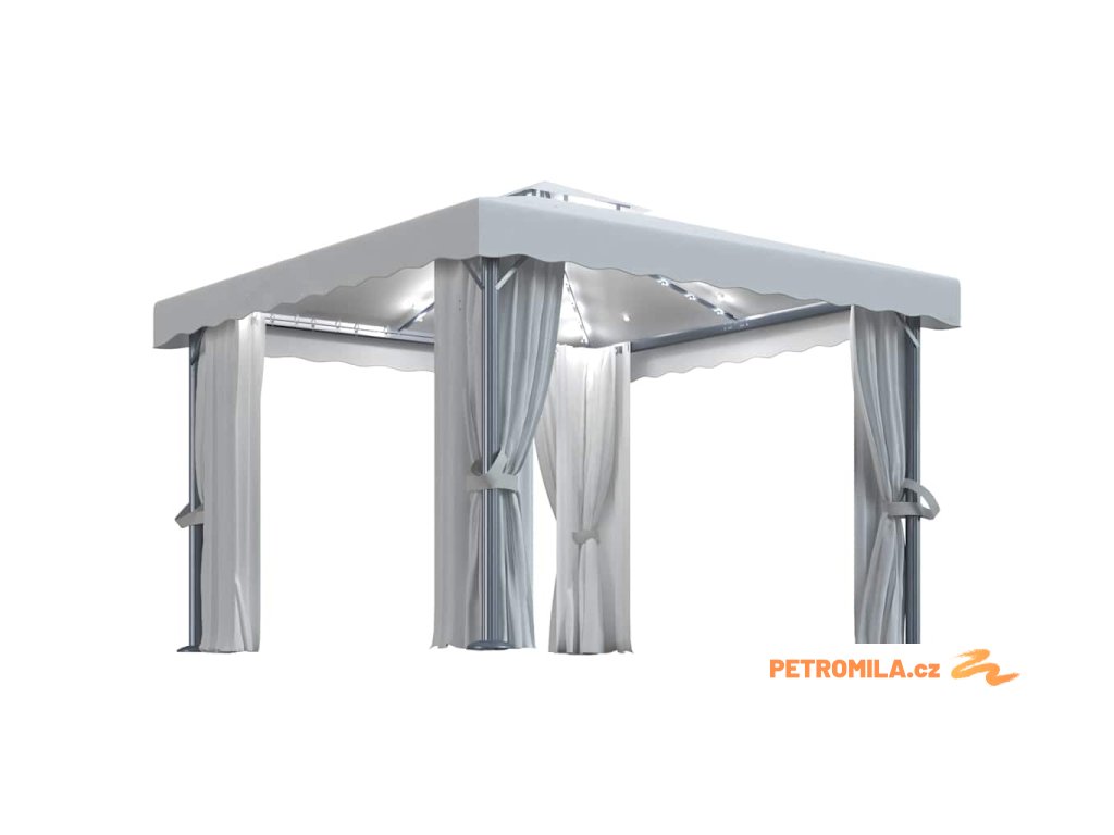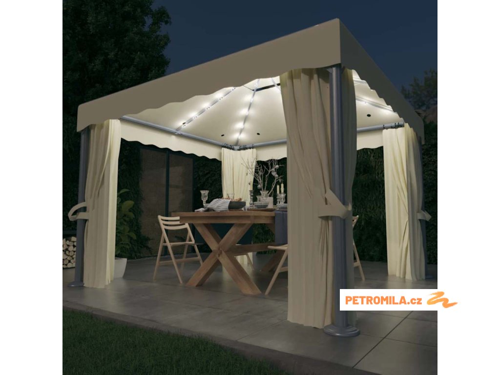 Altán se závěsy a světelnými LED řetězy 3 x 3 m krémově bílý