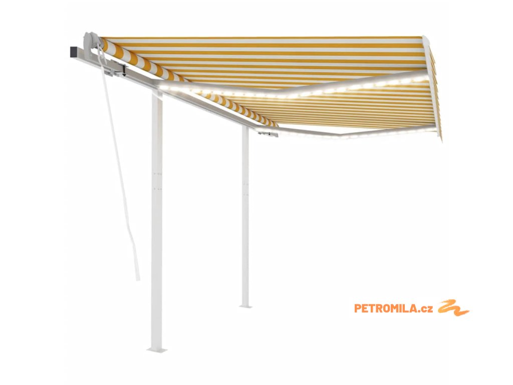 Automatická markýza LED a senzor větru 3,5 x 2,5 m žlutobílá