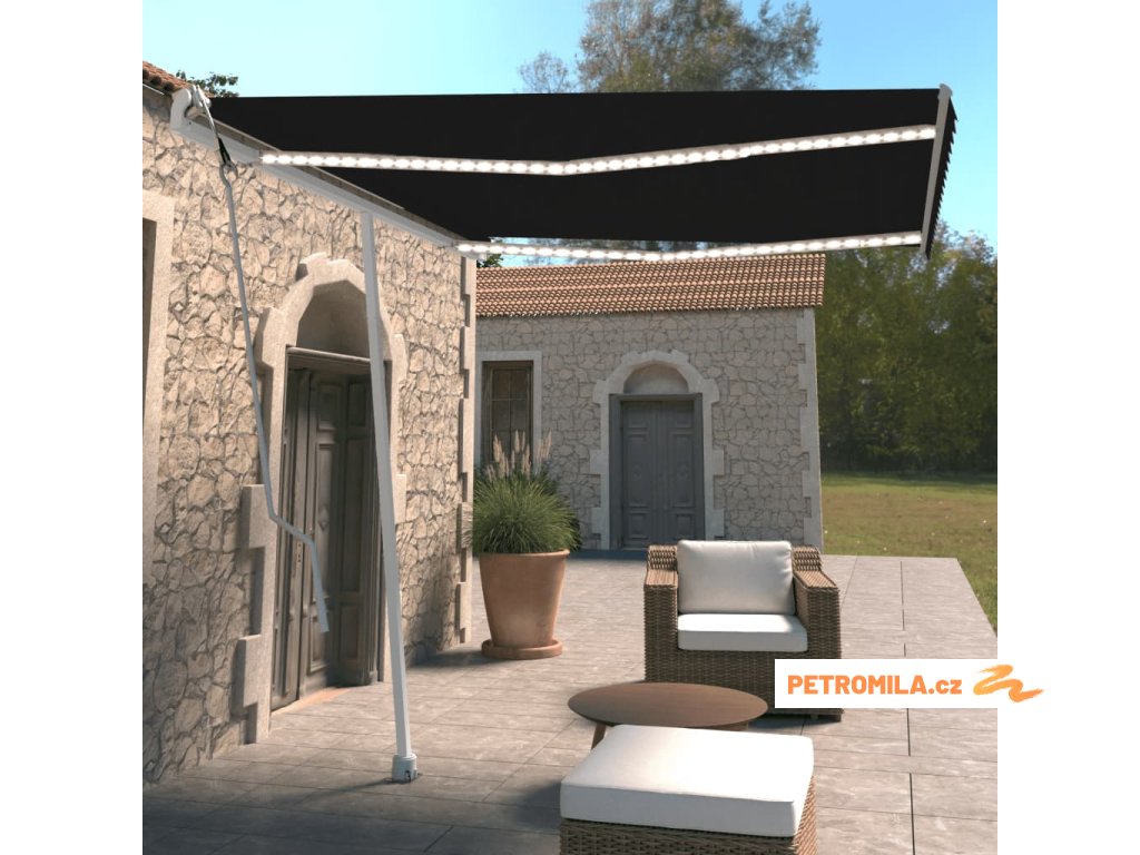 Automatická markýza LED a senzor větru 300 x 250 cm antracitová