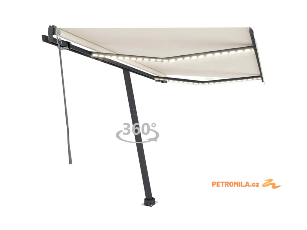 Zahradní markýza má práškově lakovaný hliníkový rám, který nerezaví, je lehký a přitom tvoří velice pevnou konstrukci. Stříška je vyrobená z polyesteru s vysokou hustotou a s PU povlakem, skvěle proto odolává vodě i UV záření. Úhel a výšku samostatně stojící markýzy si navíc můžete nastavit podle vašich momentálních potřeb. Robustní stojan lze otáčet o 360 stupňů, což vám dává maximální možnost přizpůsobení. Automatickou stříšku snadno roztáhnete a zatáhnete pomocí dálkového ovladače. K hladkému ovládání vám poslouží také dlouhá ruční klika. Markýza je rovněž opatřená senzorem větru, který ji za větrných dnů automaticky zavře. LED světla vám zase v noci poskytnou energeticky úsporné osvětlení.