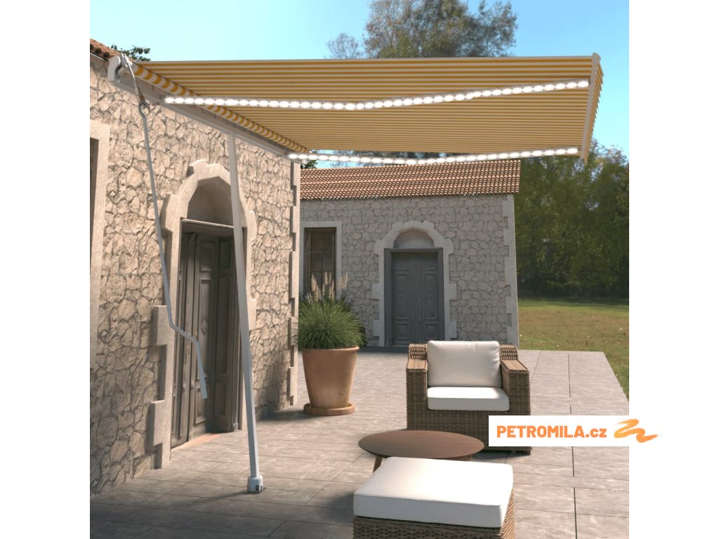Automatická markýza LED a senzor větru 300 x 250 cm žlutá/bílá