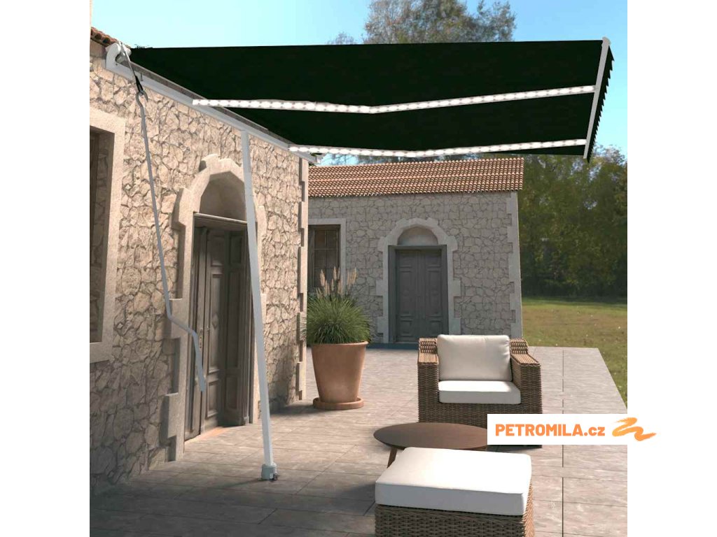 Zahradní markýza má práškově lakovaný hliníkový rám, který nerezaví, je lehký a přitom tvoří velice pevnou konstrukci. Stříška je vyrobená z polyesteru s vysokou hustotou a s PU povlakem, skvěle proto odolává vodě i UV záření. Úhel a výšku samostatně stojící markýzy si navíc můžete nastavit podle vašich momentálních potřeb. Robustní stojan lze otáčet o 360 stupňů, což vám dává maximální možnost přizpůsobení. Automatickou stříšku snadno roztáhnete a zatáhnete pomocí dálkového ovladače. K hladkému ovládání vám poslouží také dlouhá ruční klika. Markýza je rovněž opatřená senzorem větru, který ji za větrných dnů automaticky zavře. LED světla vám zase v noci poskytnou energeticky úsporné osvětlení.