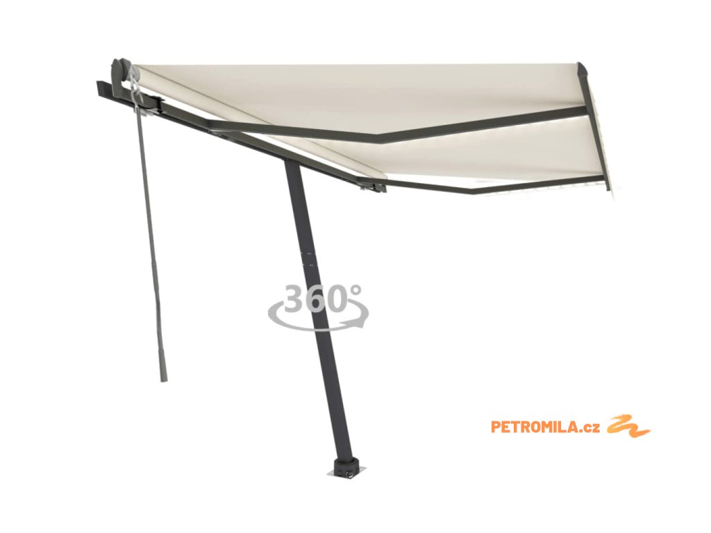 Zahradní markýza má práškově lakovaný hliníkový rám, který nerezaví, je lehký a přitom tvoří velice pevnou konstrukci. Stříška je vyrobená z polyesteru s vysokou hustotou a s PU povlakem, skvěle proto odolává vodě i UV záření. Úhel a výšku samostatně stojící markýzy si navíc můžete nastavit podle vašich momentálních potřeb. Robustní stojan lze otáčet o 360 stupňů, což vám dává maximální možnost přizpůsobení. Automatickou stříšku snadno roztáhnete a zatáhnete pomocí dálkového ovladače. K hladkému ovládání vám poslouží také dlouhá ruční klika. Markýza je rovněž opatřená senzorem větru, který ji za větrných dnů automaticky zavře. LED světla vám zase v noci poskytnou energeticky úsporné osvětlení.