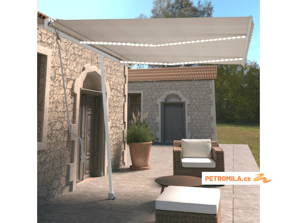 Automatická markýza LED a senzor větru 350 x 250 cm krémová